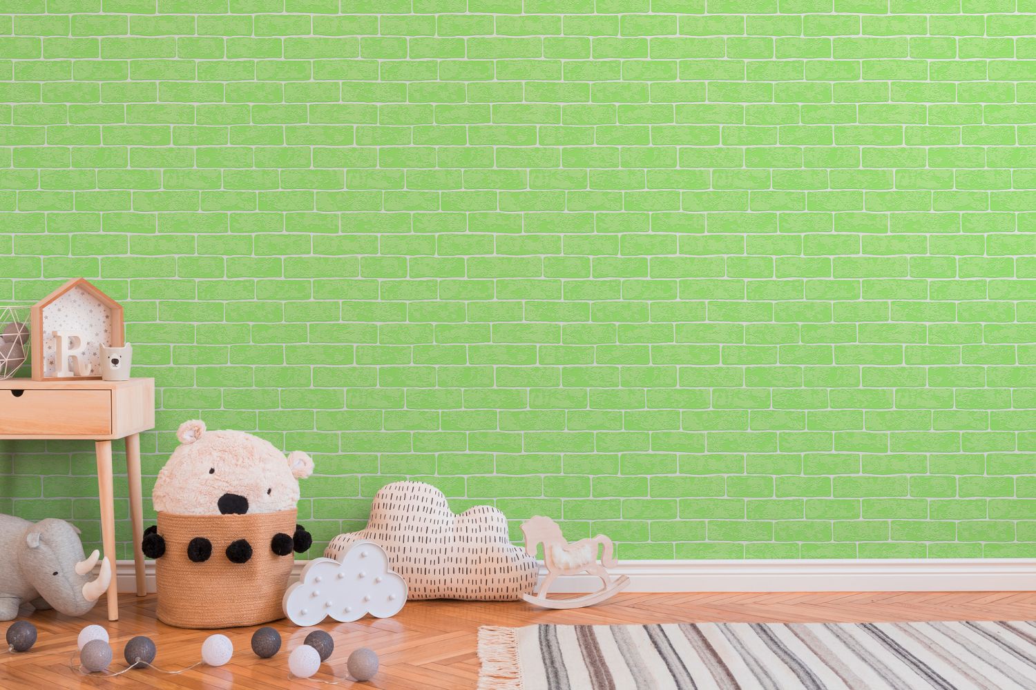 Ce papier peint brique en vert citron donnera de la profondeur et du caractère à votre pièce en créant une ambiance authentique et chaleureuse. Il peut s’insérer dans plusieurs types de décoration et se mélanger avec plusieurs couleurs. Laissez-vous charmer par ce beau revêtement mural!
