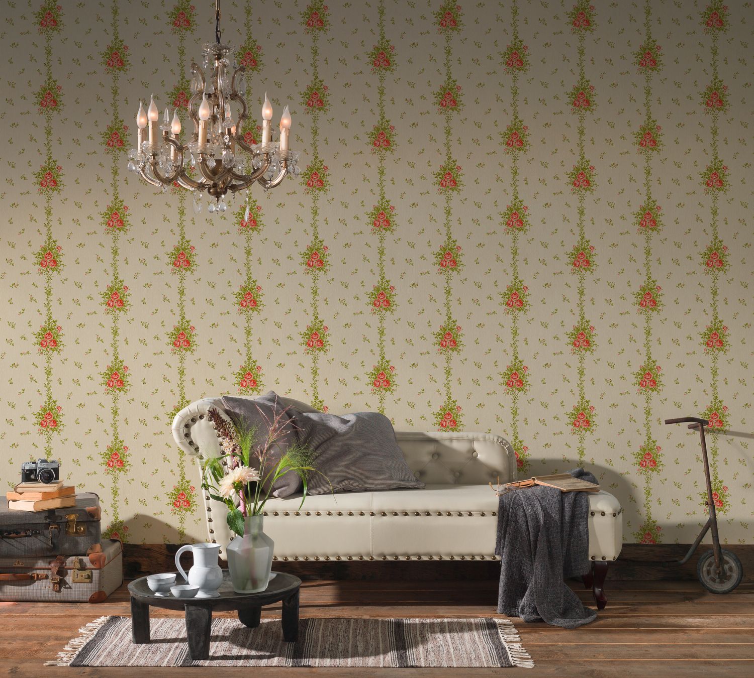 A.S. Création papier peint fleurs rouge, vert et beige - AS-345001 - 53 cm x 10,05 m