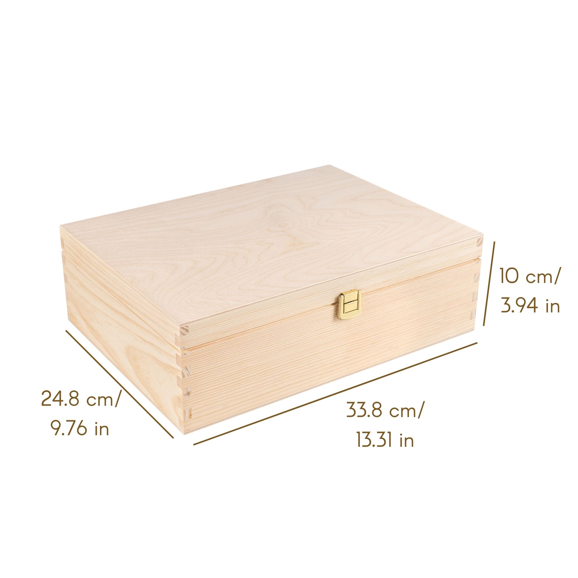 A4 Boite de Rangement en Bois Non Peint | 33,8 x 24,8 x 10 (+/- 1) cm | avec Couvercle et Serrure