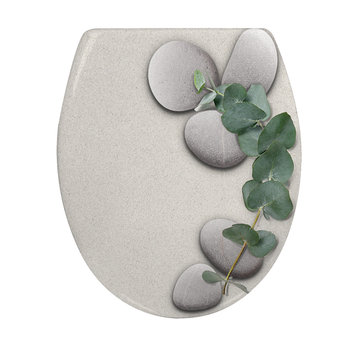 Abattant WC Duroplast décor galets et eucalyptus frein de chute déclipsable