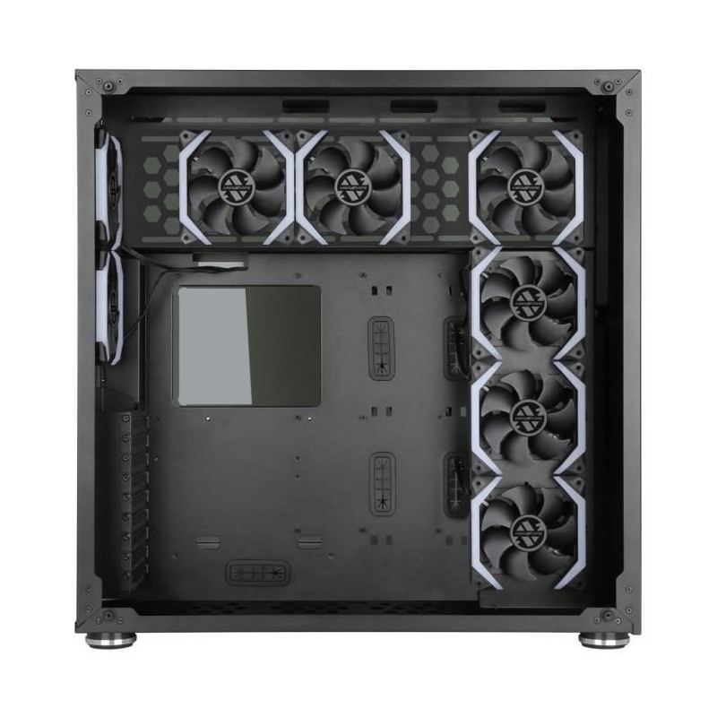 Boitier PC Grande tour - Pour carte mere E-ATX/ATX/Micro ATX/Mini-ITX - inclus 8x120mm A-RGB Sync - USB3.0-2.0/HD Audio - 2 x Verre trempé (gauche et droite) - Façade en metal avec LED sur les ports - Couleur NOIR