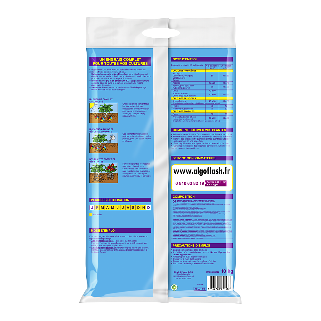 | Libellé | Ablu10n3-engrais bleu universel 10 kg |