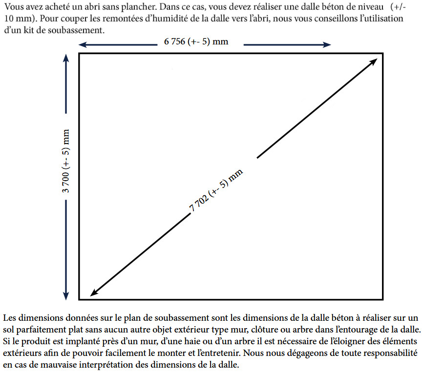 Dimensions utiles abri : 3,70 x 3,644 m.