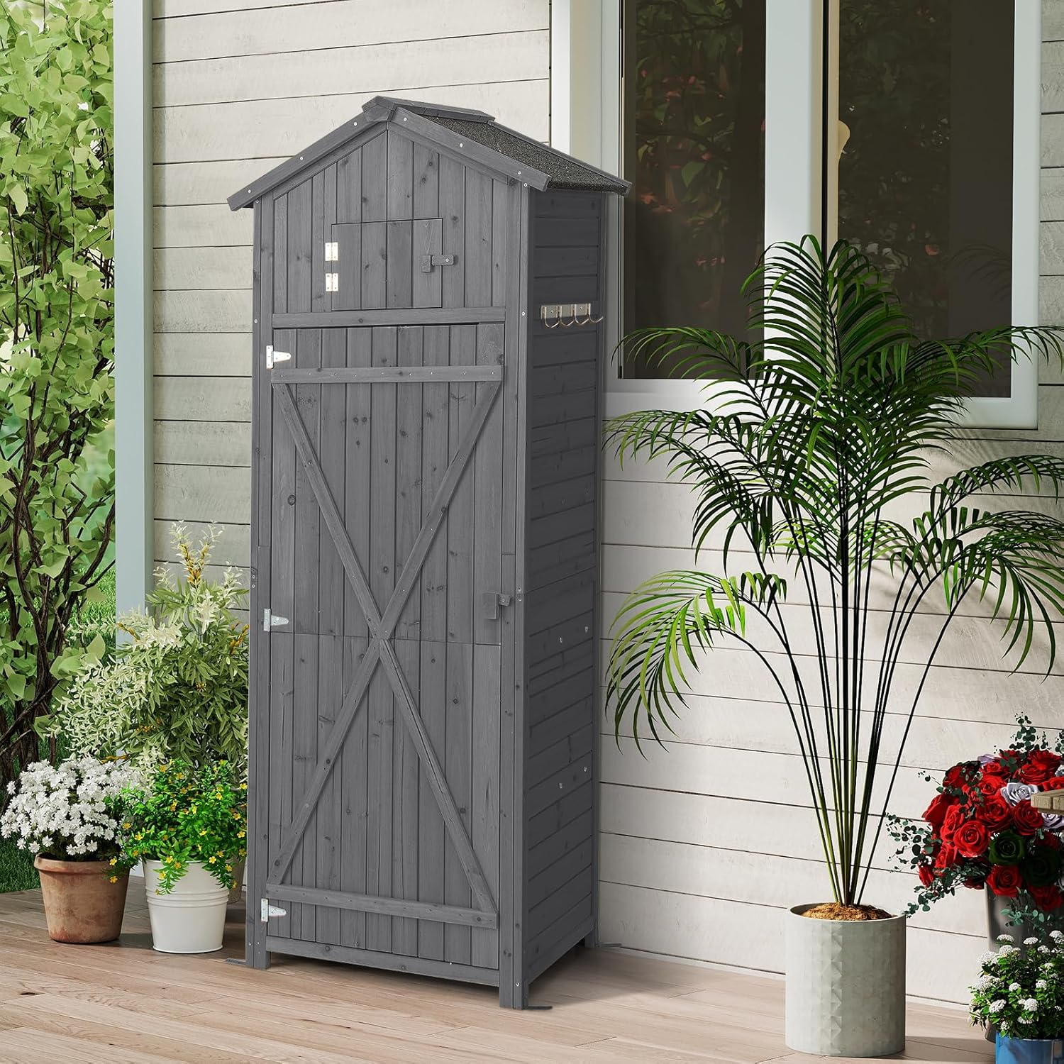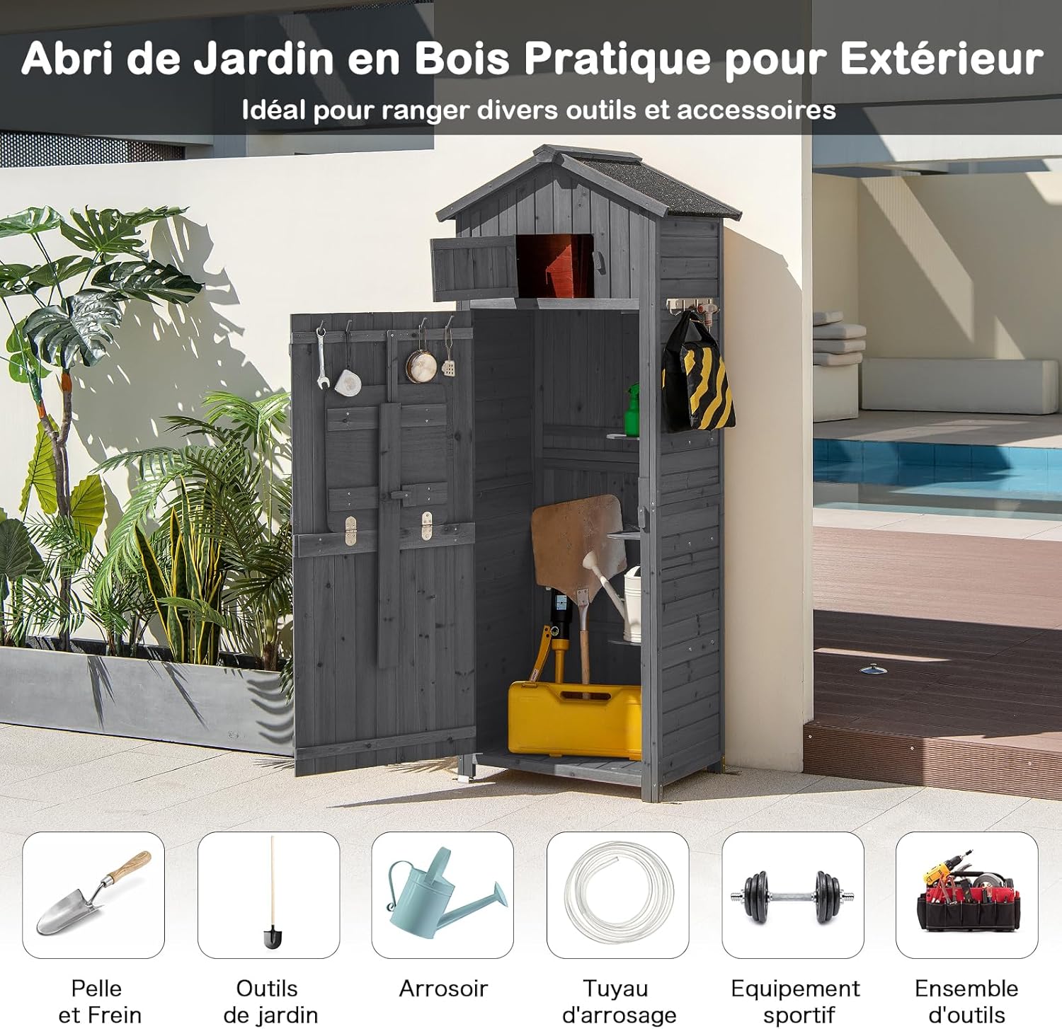 - Abri de jardin pratique:Cet abri de rangement extérieur en bois mesure 75 x 50 x 180,5 cm, ce qui est parfait pour organiser des articles en désordre. Il est idéal pour ranger divers outils et accessoires. De plus, avec la table pliante monobloc, elle peut également être utilisée comme établi pour prendre soin des plantes.