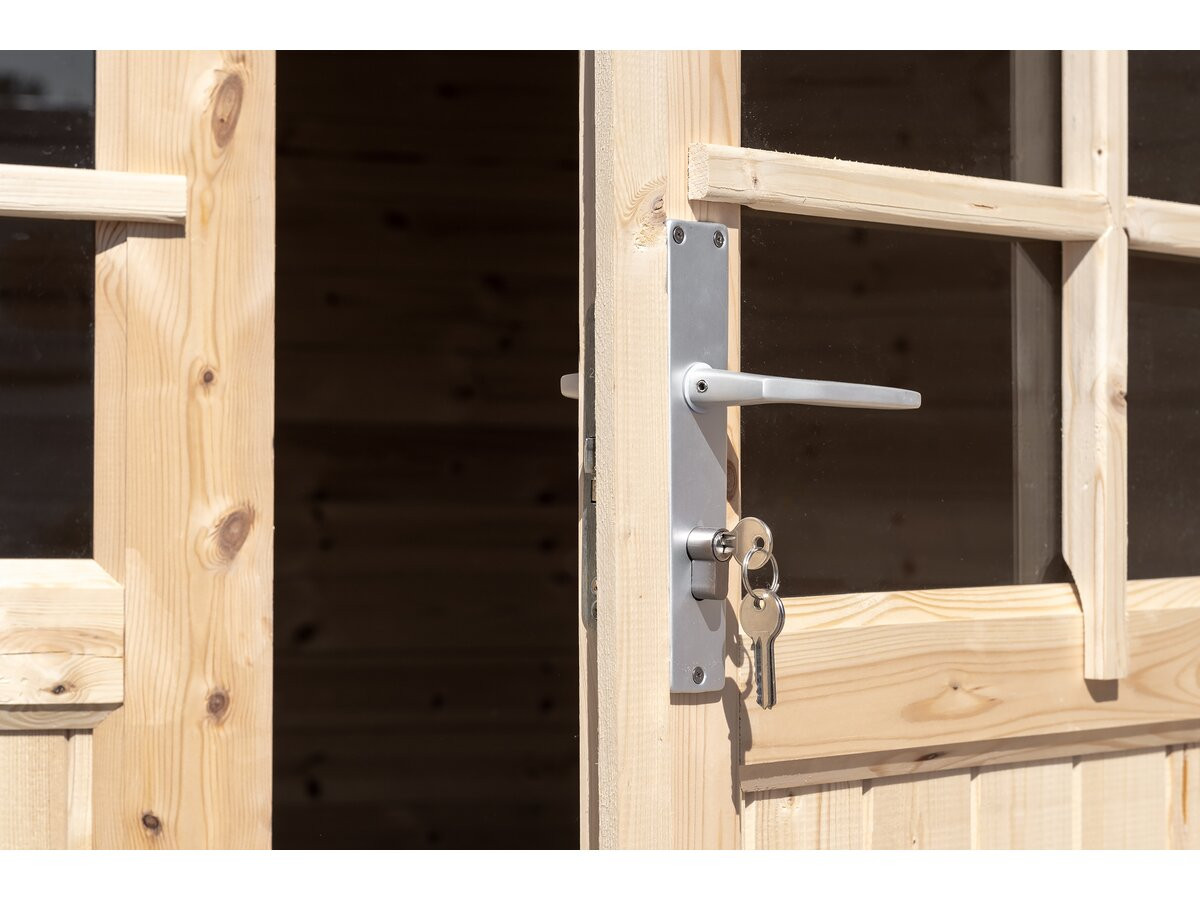 Abri de jardin bois 20,2m² "Alex" - 28 mm :Découvrez l'abri de jardin en bois "Alex" fabriqué à partir d'épicéa d'europe du nord de 28 mm d'épaisseur, parfait pour stocker vos matériels de jardin ou simplement avoir un espace de rangement supplémentaire. Cet abri robuste et élégant est doté de madriers de 28 mm et d'une porte double avec fenêtre, apportant luminosité et vous permettant de ranger des objets volumineux. Fabriqué en Europe, il garantit qualité et durabilité. Ajoutez une touche de fonctionnalité à votre jardin avec l'abri "Alex"Abri de jardin bois 28 mm "Alex" - Porte double - avec fenêtre - Dimensions extérieures : 480 x 400 x 239 cm - Fabrication européenne .Descriptif: Abri de jardin en bois, Alex