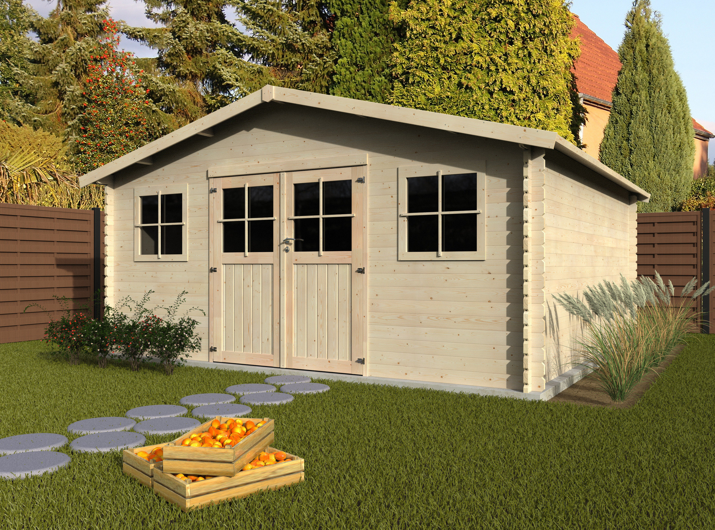 Abri de jardin bois AVELIN 478x478 cm - Surface utile : 20,43 m² - Épaisseur : 34 mm - Couleur : Naturel
