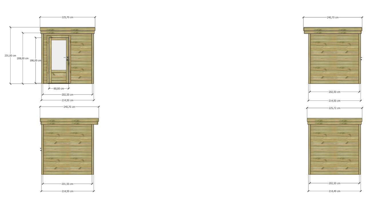 | Libellé | ABRI DE JARDIN bois Pin autoclave 27mm - 2,14x2,14m / 4,6m2 - Bac acier - Abri Français |