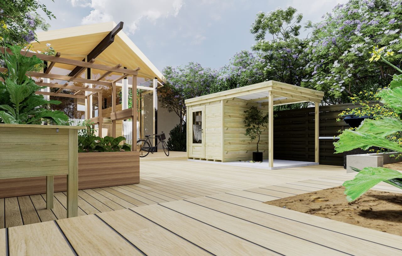 | Libellé | ABRI DE JARDIN bois Pin autoclave 27mm - 4,14x2,64m / 10,9m2 - Bac acier - Plancher bois |