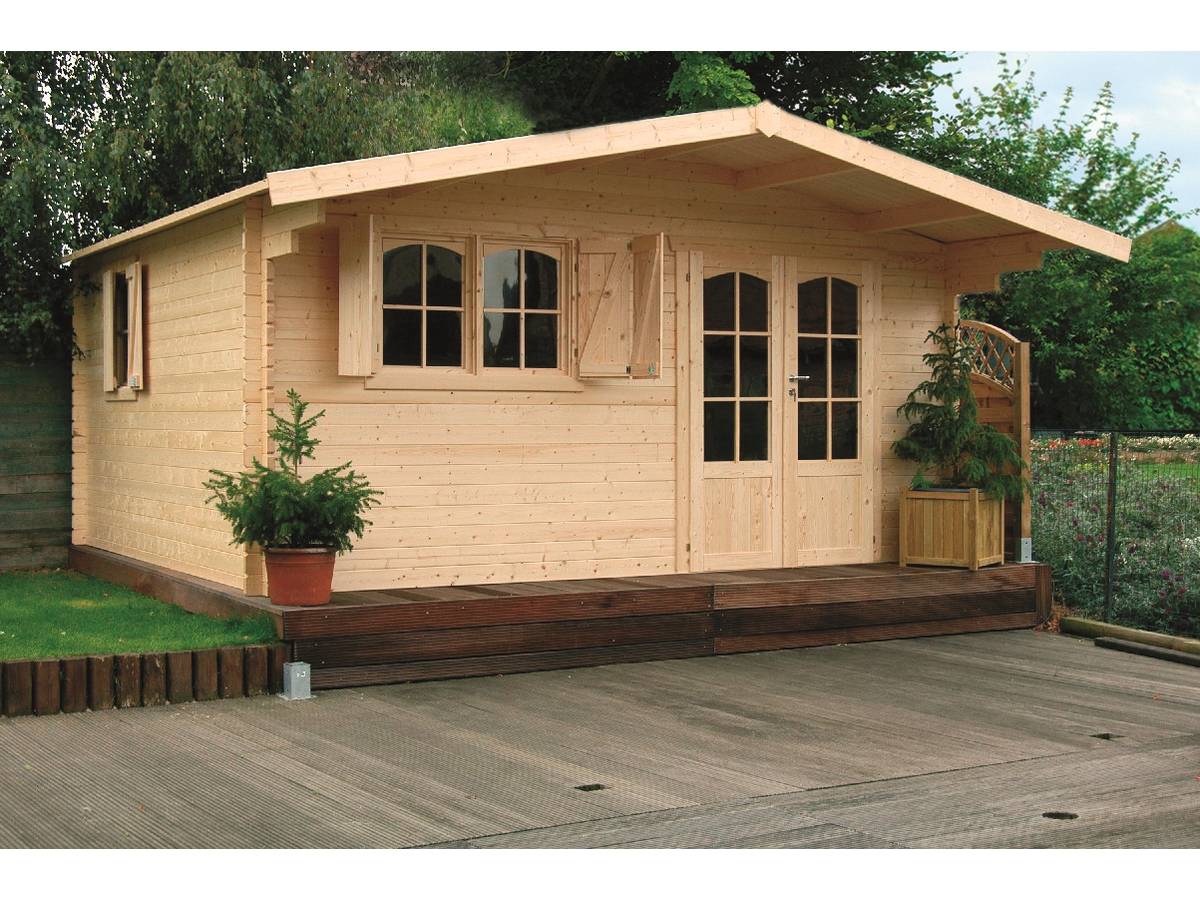 Abri jardin bois Chamonix - 19.98 m² - 4.78 x 4.18 x 2.35 m.Structure:Bois.Plancher:En option.Surface intérieure (m²):17.79 m².Surface extérieure (m²):19.98 m².Intérieures:4.528 x 3.928 x 1.780 m.Extérieures:4.78 x 4.18 x 2.35 m.Hors tout:5.164 x 5.33 x 2.35 m - Surface hors tout : 27.52 m².Hauteur des murs:1.78 m.Hauteur faîtage:2. 35 m.Dimensions:1.586 x 1.7 m.Type:Double porte avec vitre.Fenêtre:Oui, avec volets.Épaisseur:40 mm.Origine:Belgique.Traitement:A traiter.Épaisseur des panneaux de particules / des voliges:16 mm.Type de toiture:Double pente, shingles rouges.Surface de la toiture:27.25 m².Pourcentage de la pente:12° - Charge de neige : 75kg/m².Système d'aération Chaque face est peinte (48 m² de peinture par face) Rebord d'entrée Verres de sécurité Poignée de sécurité pour enfants - Windblock.Dimensions de la dalle béton:4.78 x 4.18 m.Colisage:1 colis : - 5,3 x 1,95 x 0,745 m, 1400 kg.Dimensions:18 - 20 m².