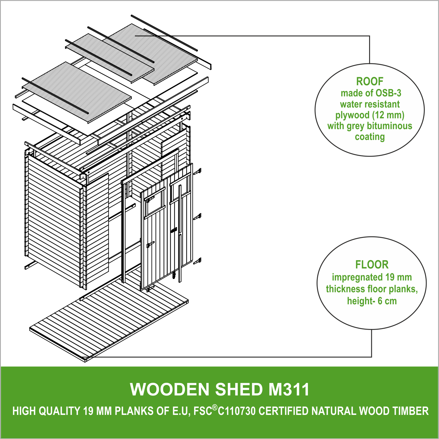 Sol prétraité - nos planches de sol épais (19 mm) sont prétraités et prêts à l'emploi. Cela permet de protéger votre sol de l'humidité et d'éviter l'apparition de pourriture.
