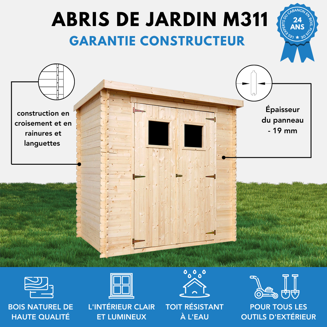 | Libellé | Abri de jardin en bois - 2.22m2 - l204 x L142 x H200cm - AVEC SOL TRAITÉ, TIMBELA M311+M311G |