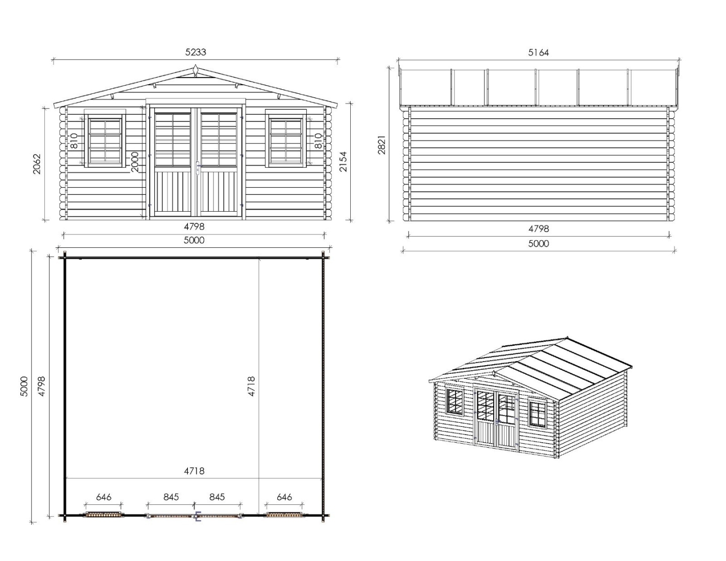 - Type de toit: toit à deux pentes