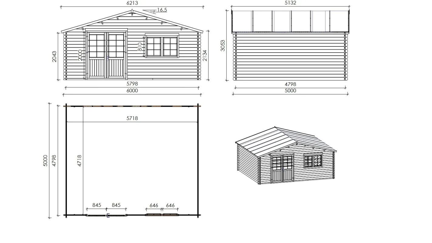 - Type de toit: toit à deux pentes