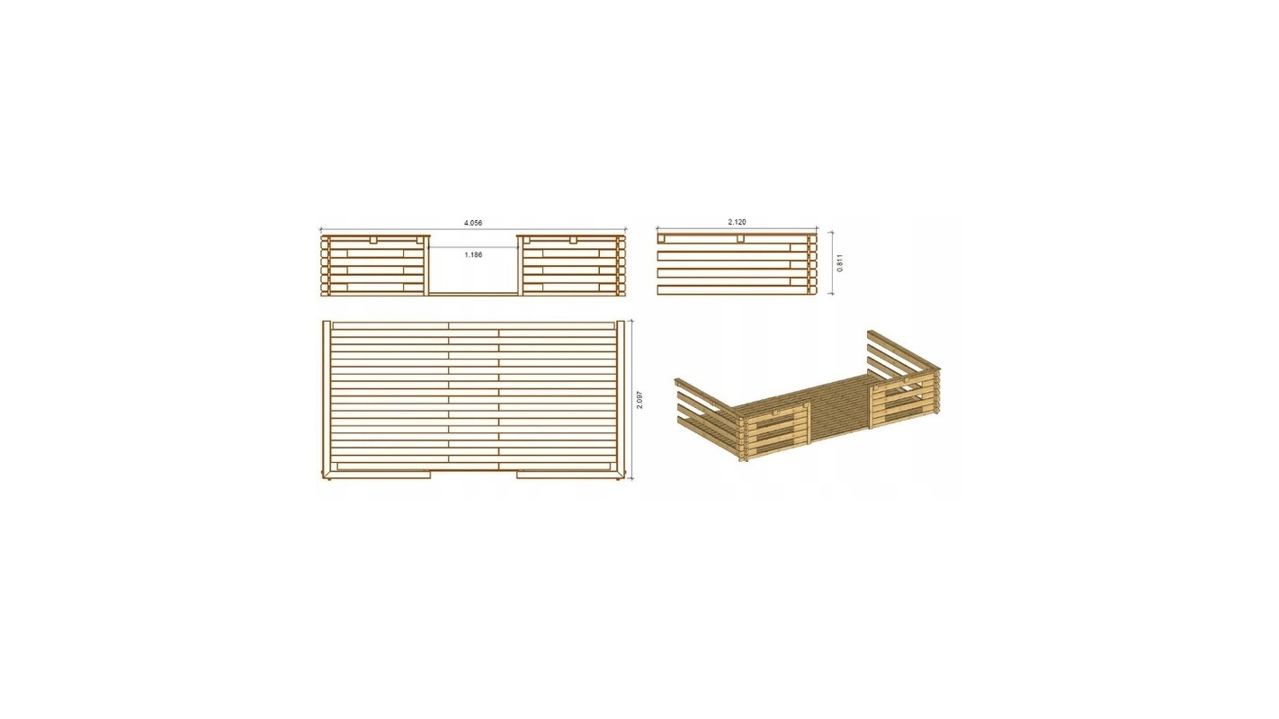 | Libellé | Abri de jardin en bois - 4x3 m + terrasse avec balustrade et avant-toit en bois - 20 m2 - DOM337+DOM17+DOM18+POD04 - ALTANKA |