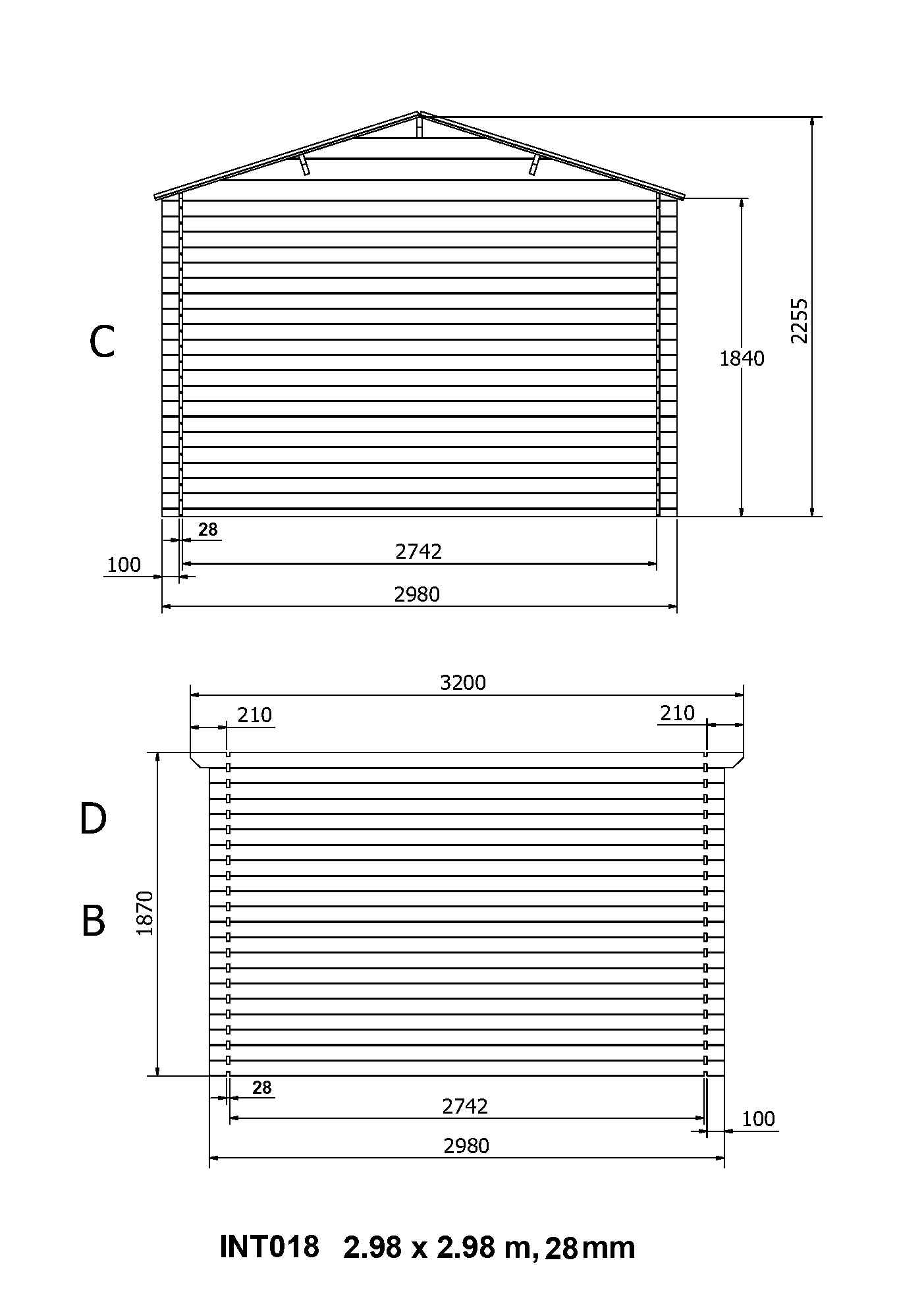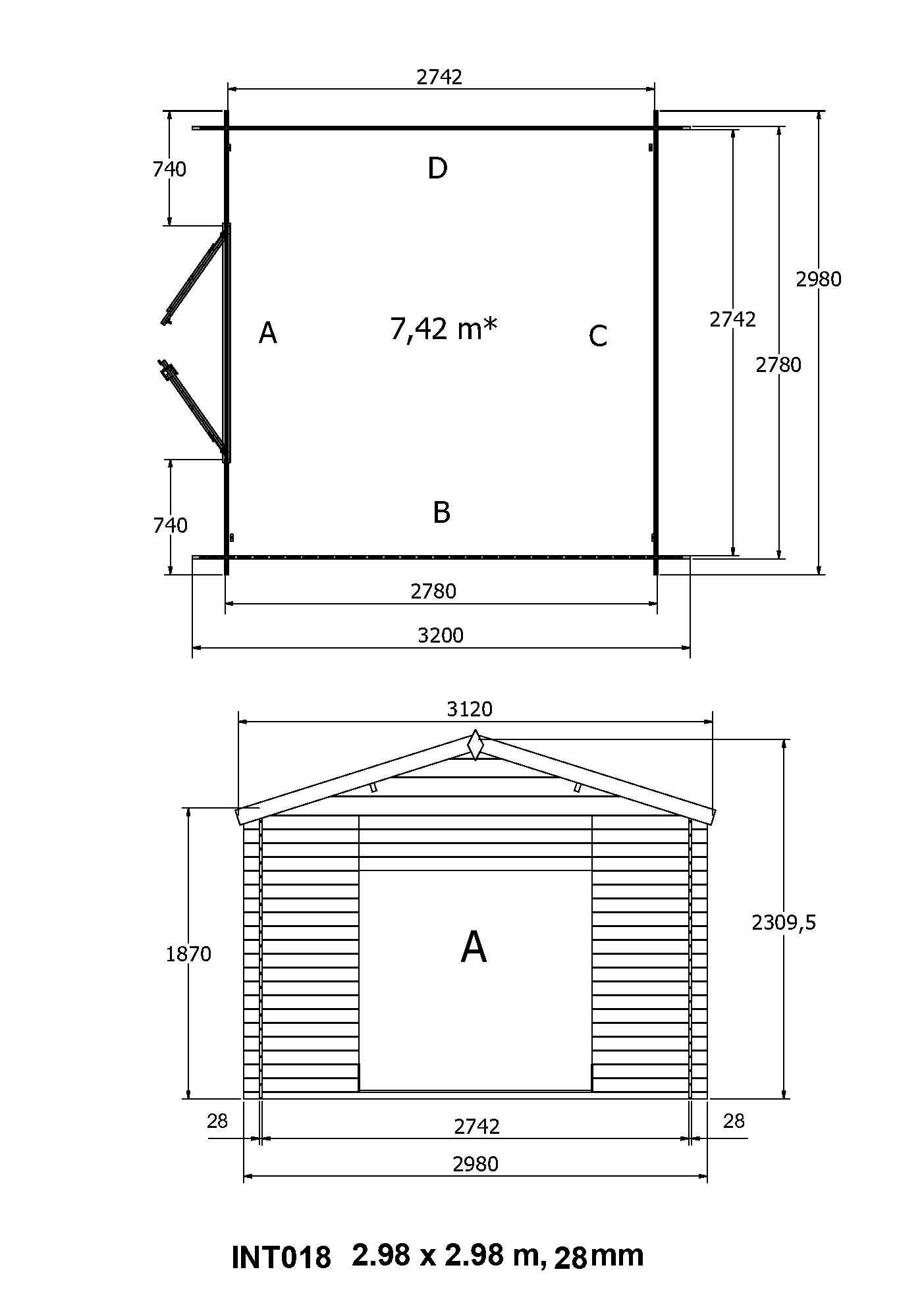 | Libellé | Abri de jardin en bois, ep 28mm, surface utile 7.5m², INT018 |