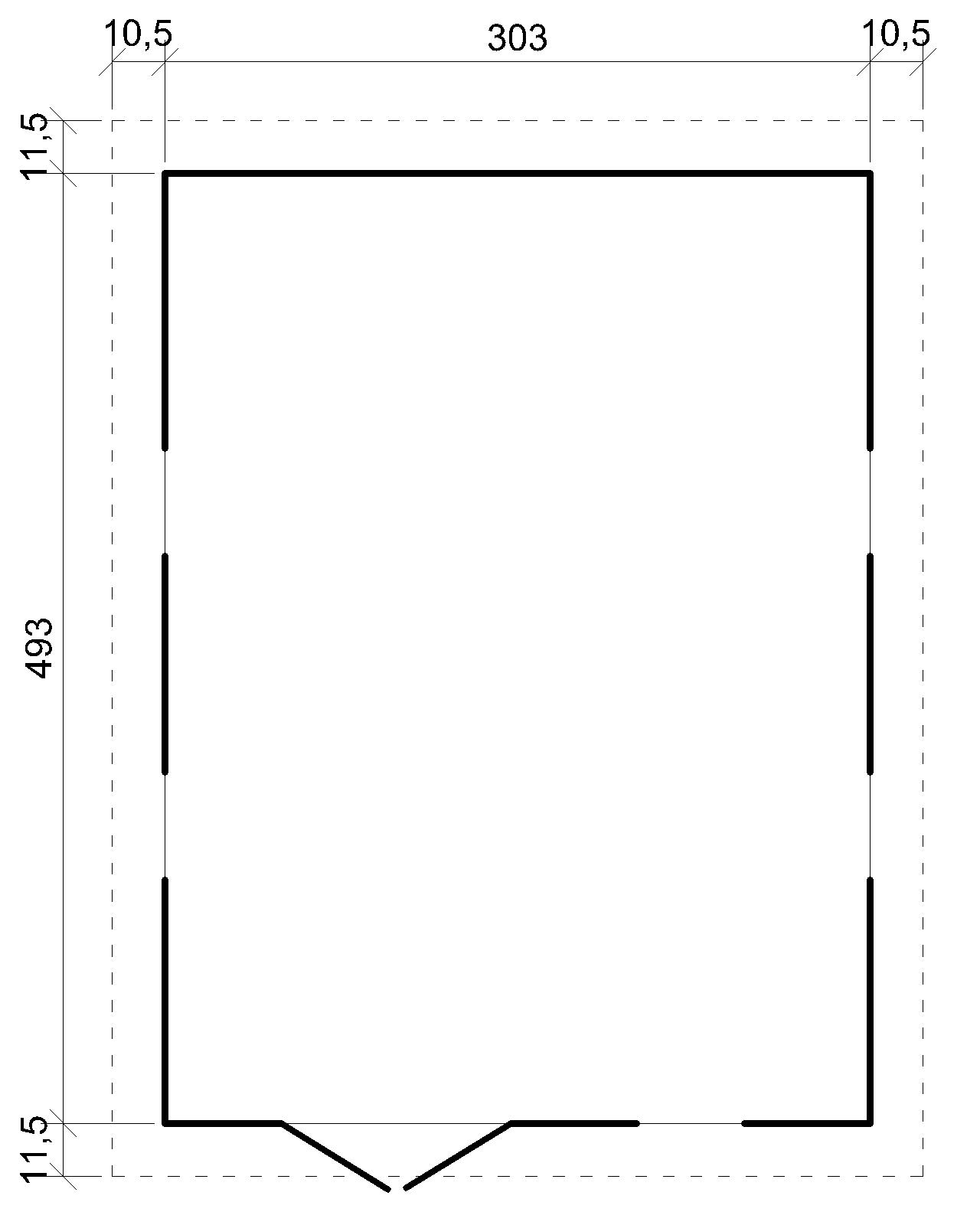 Dimensions extérieures avec débord de toit: L516 x L324 cm