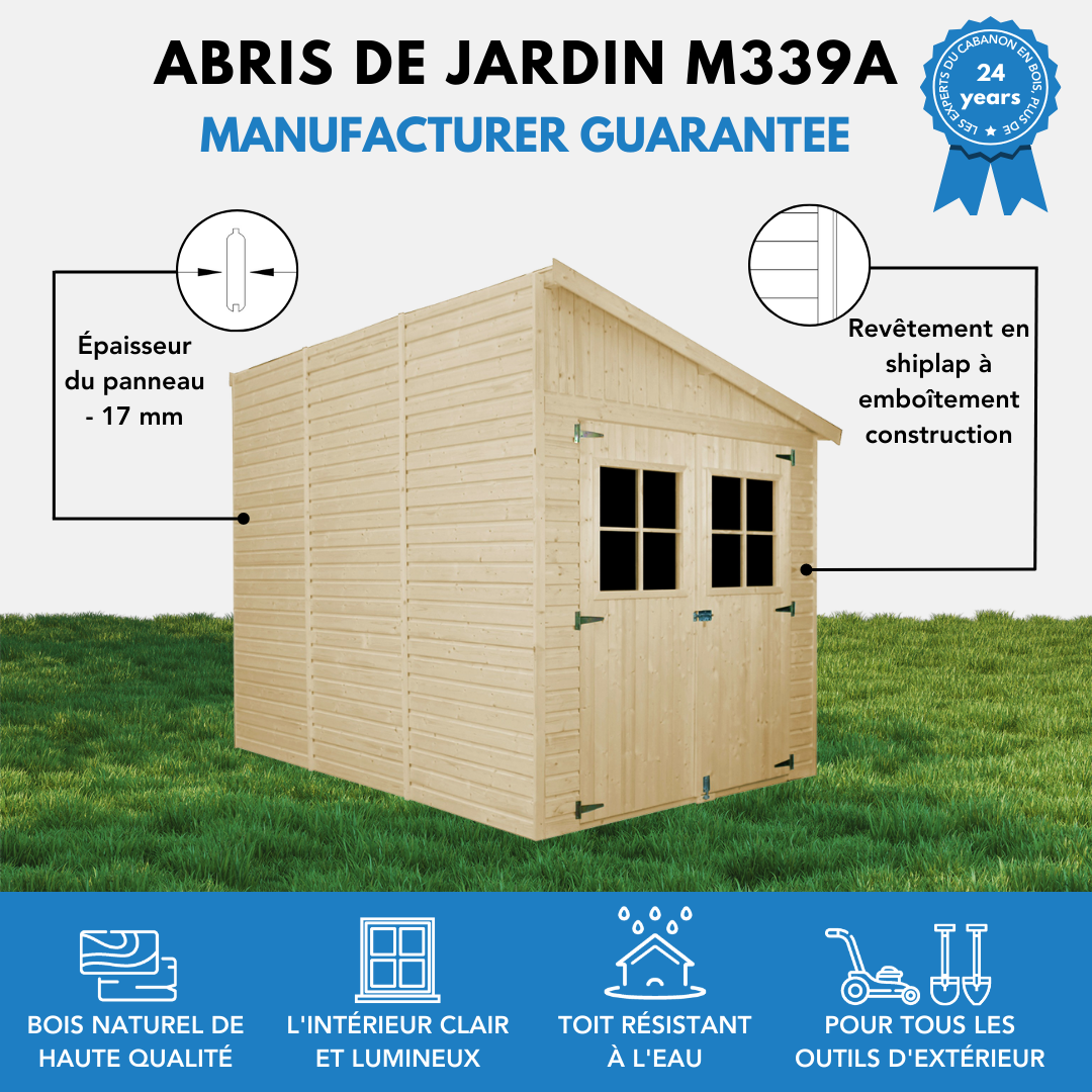 | Libellé | Abri de Jardin en Bois Naturel - 6,1 m2 - H244 x l218 x L318 cm - avec paroi latérale - TIMBELA M339A |