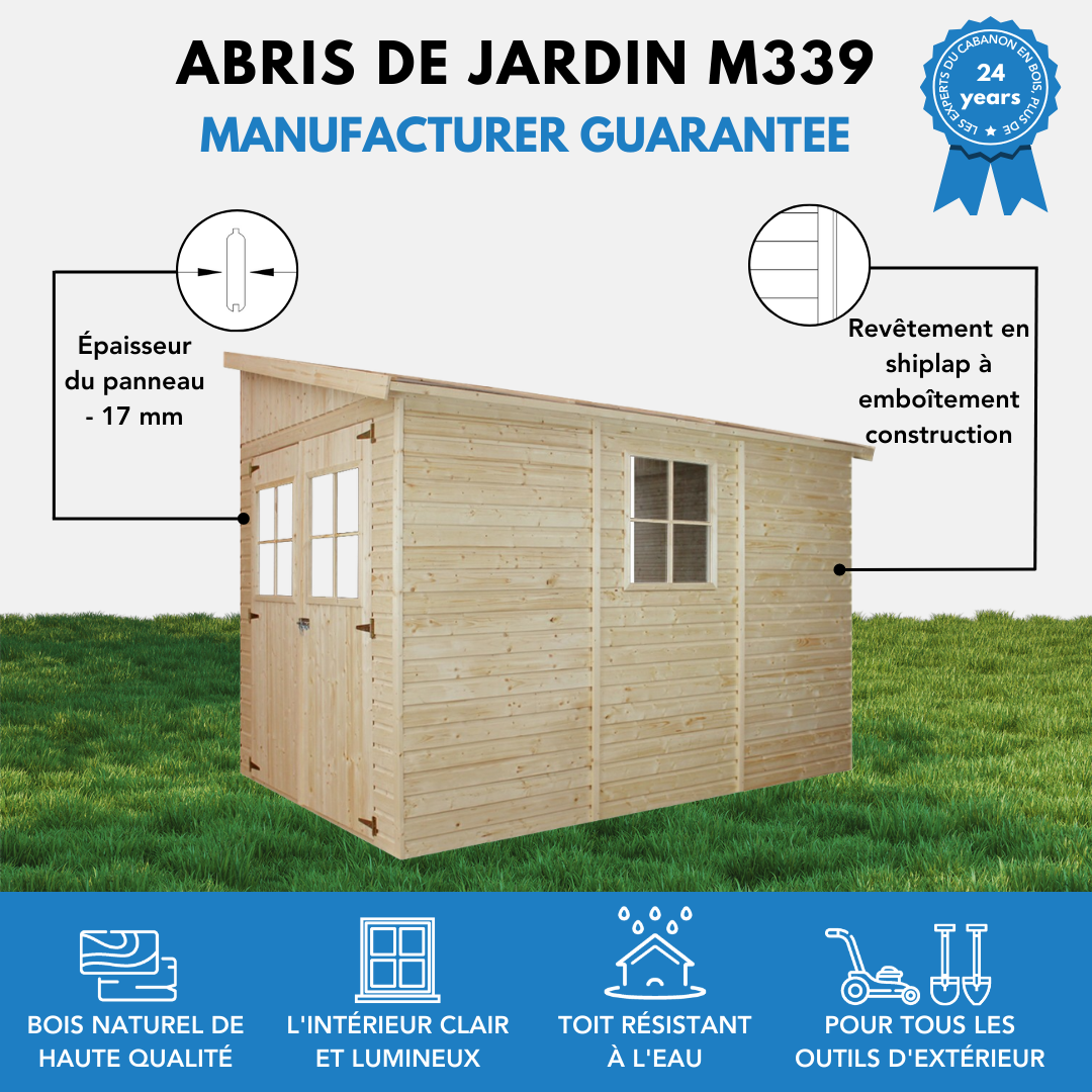 | Libellé | Abri de Jardin en Bois Naturel - 6 m2 - H243 x l216 x L318 cm - sans paroi latérale - TIMBELA M339 |