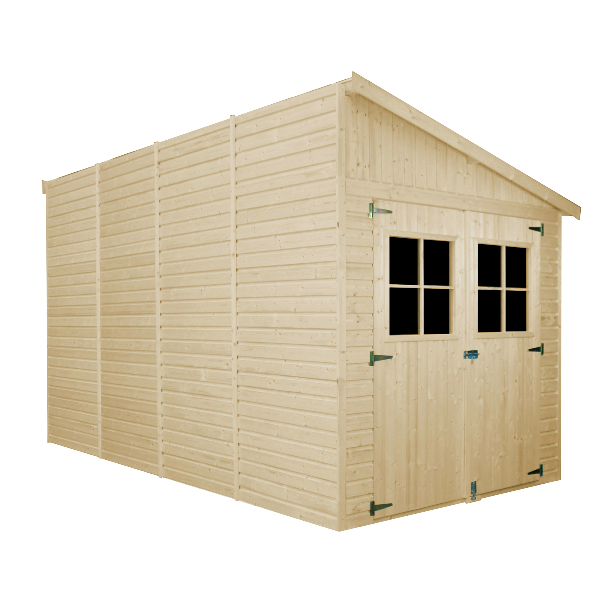 Abri de Jardin en Bois Naturel - 8,1 m2 - H244 x l218 x L416 cm - avec paroi latérale - TIMBELA M340A