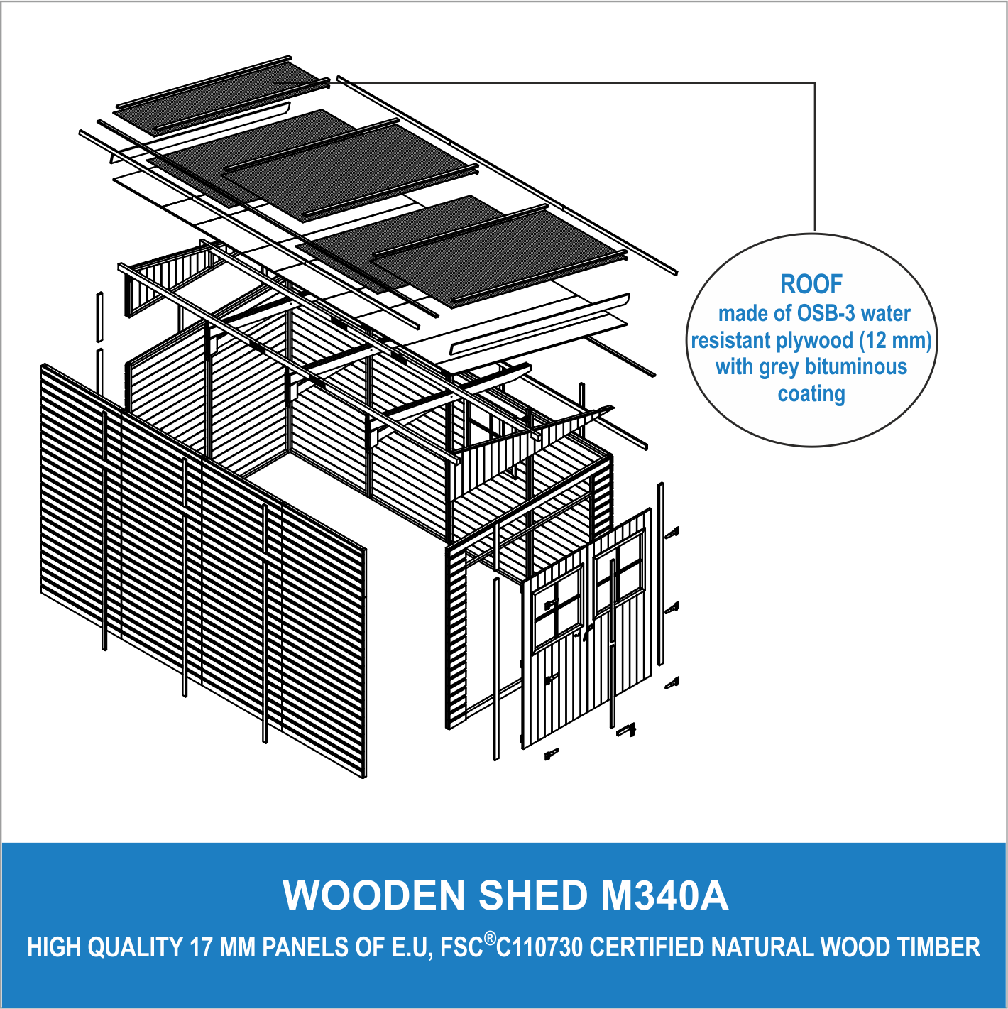 -Toiture en contreplaqué résistant à l'eau OSB-3 (12 mm) avec revêtement bitumineux