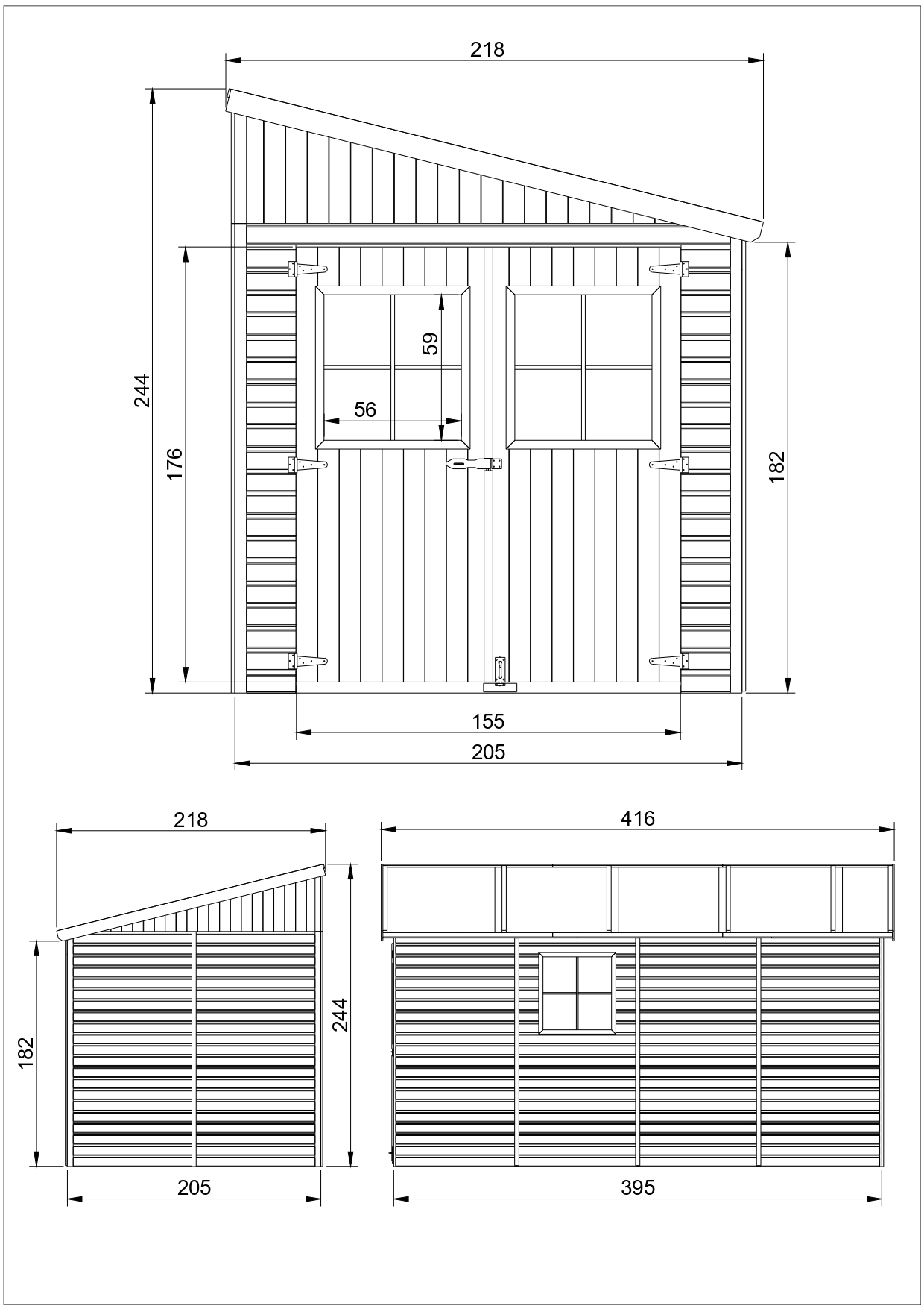 Dimensions extérieures avec débord de toit: L218 x L416 cm