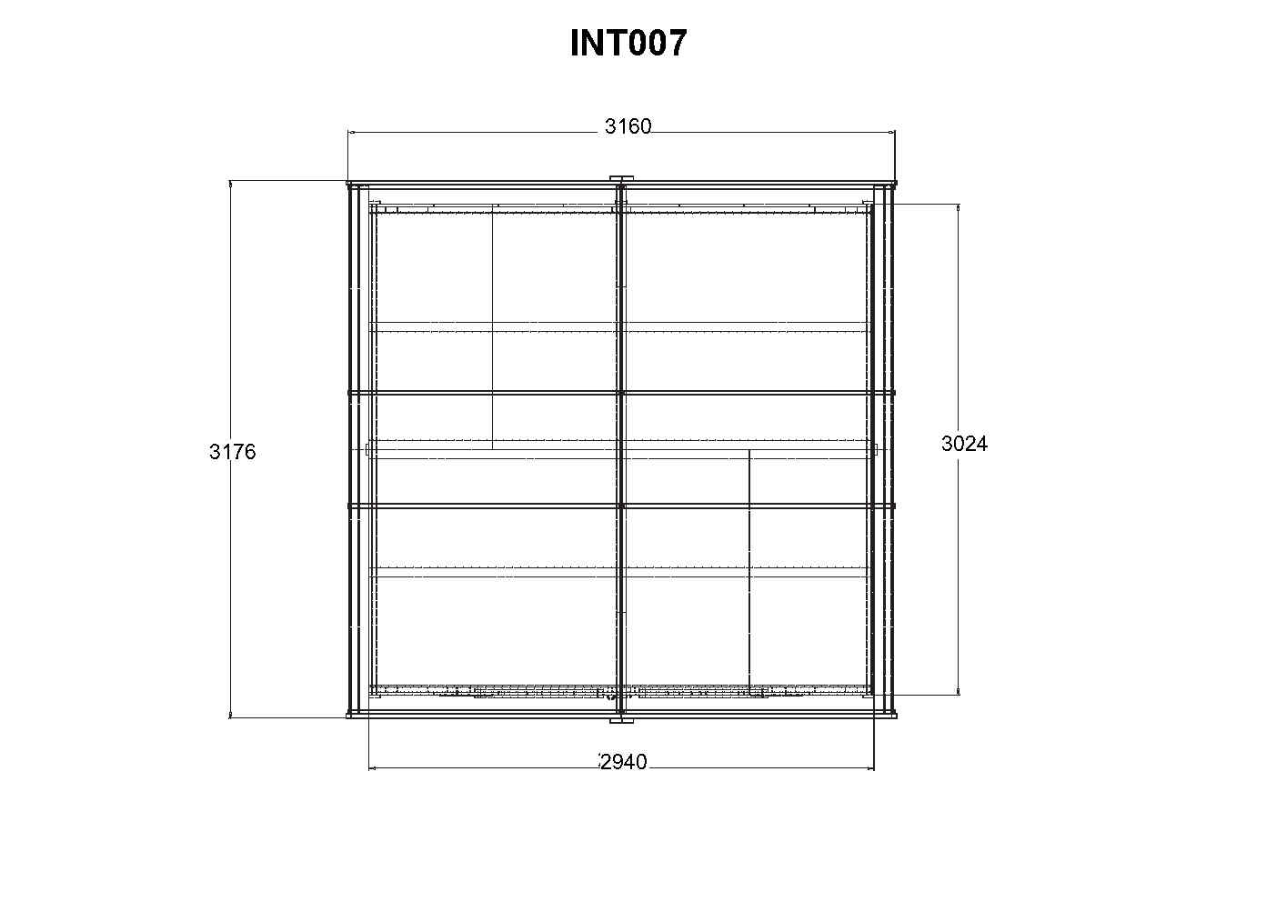1 porte double battante, vitrée (plexiglas). Dimensions : 141 x 174 cm.