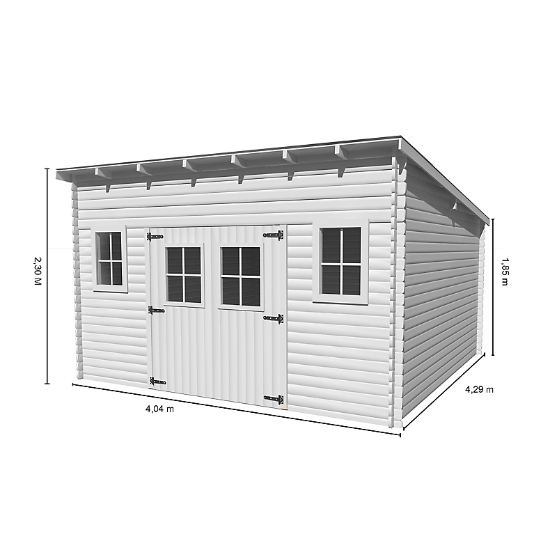 | Libellé | Abri de jardin en madriers massifs 28mm avec toit mono-pente - 17.33m² gris |