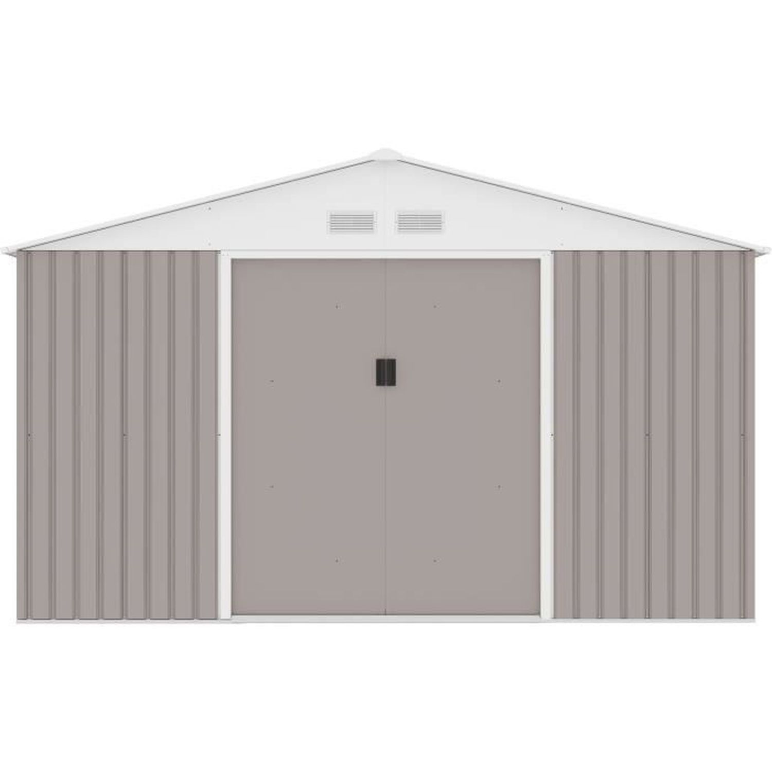 Passer le carrousel d'imagesAbri de jardin en acier galavanisé avec kit d'ancrage inclus - 10.2m² - avec 2 portes coulissantes et une serrure - Taupe