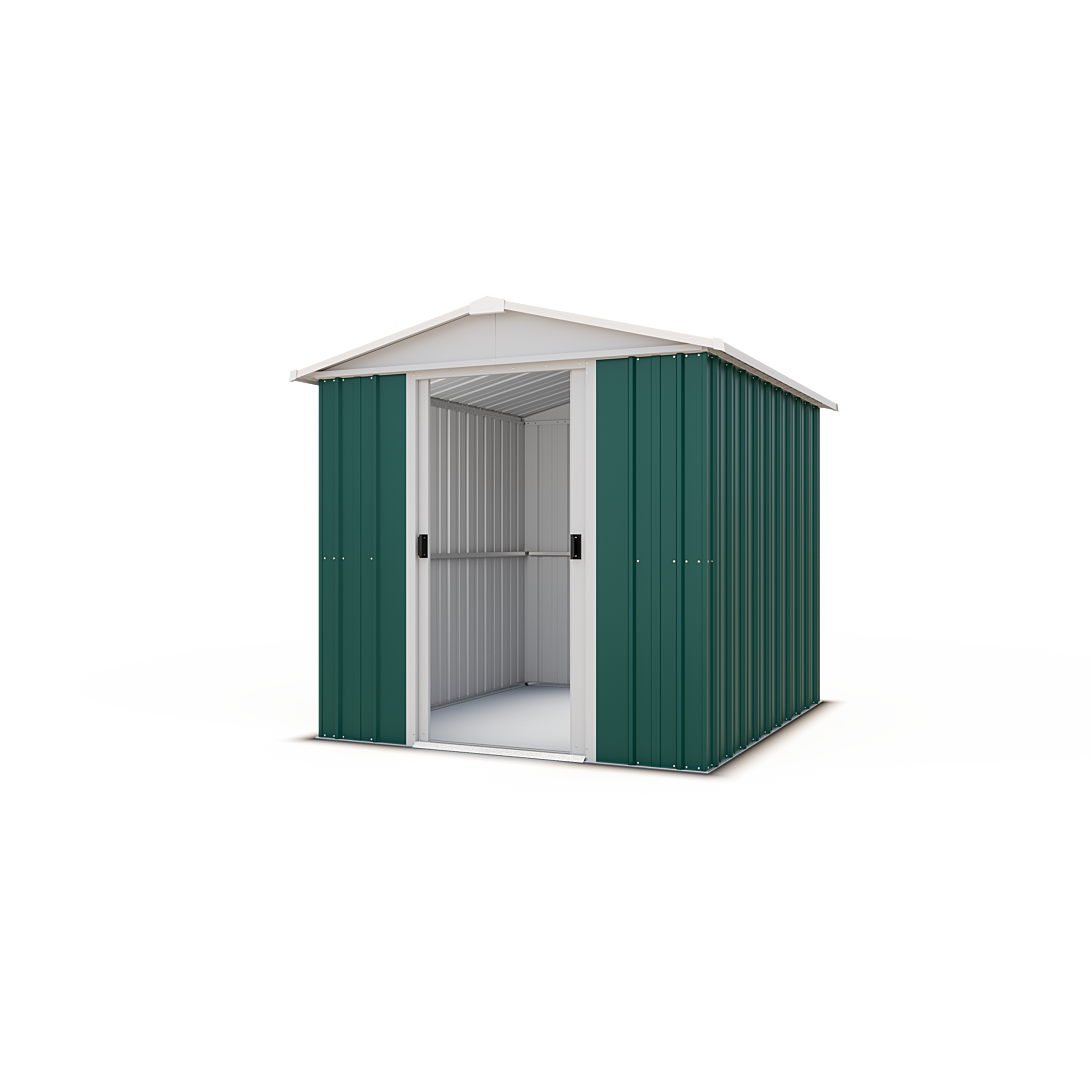 Abri de jardin métal de 4,38 m² de surface hors tout et de 3,69 m² de surface utile. Ne nécessite aucun entretien du fait de sa structure galvanisée. Un rapport qualité/prix imbattable. Fronton et porte épaisseur 5/10 ème, toit épaisseur 3/10 ème = solidité assurée. Ouverture des portes haute et large. Murs intérieurs, toit et portes coloris alu. Panneaux verticaux extérieurs coloris vert. Deux portes coulissantes intérieures. Bords des panneaux pliés pour plus de sécurité. Vis inox anti-rouille. Kit d'ancrage inclus. Dimensions surface utile (L x l) : 182 x 203 cm soit 3,69 m². Dimensions extérieures au sol (L x l) : 186 x 207 cm soit 3,85 m². Dimensions hors tout (L x l x h) : 202 x 217 x 189 cm soit 4,38 m². Hauteur des murs : 160 cm. Dimensions des portes : L 80 x H 158 cm.