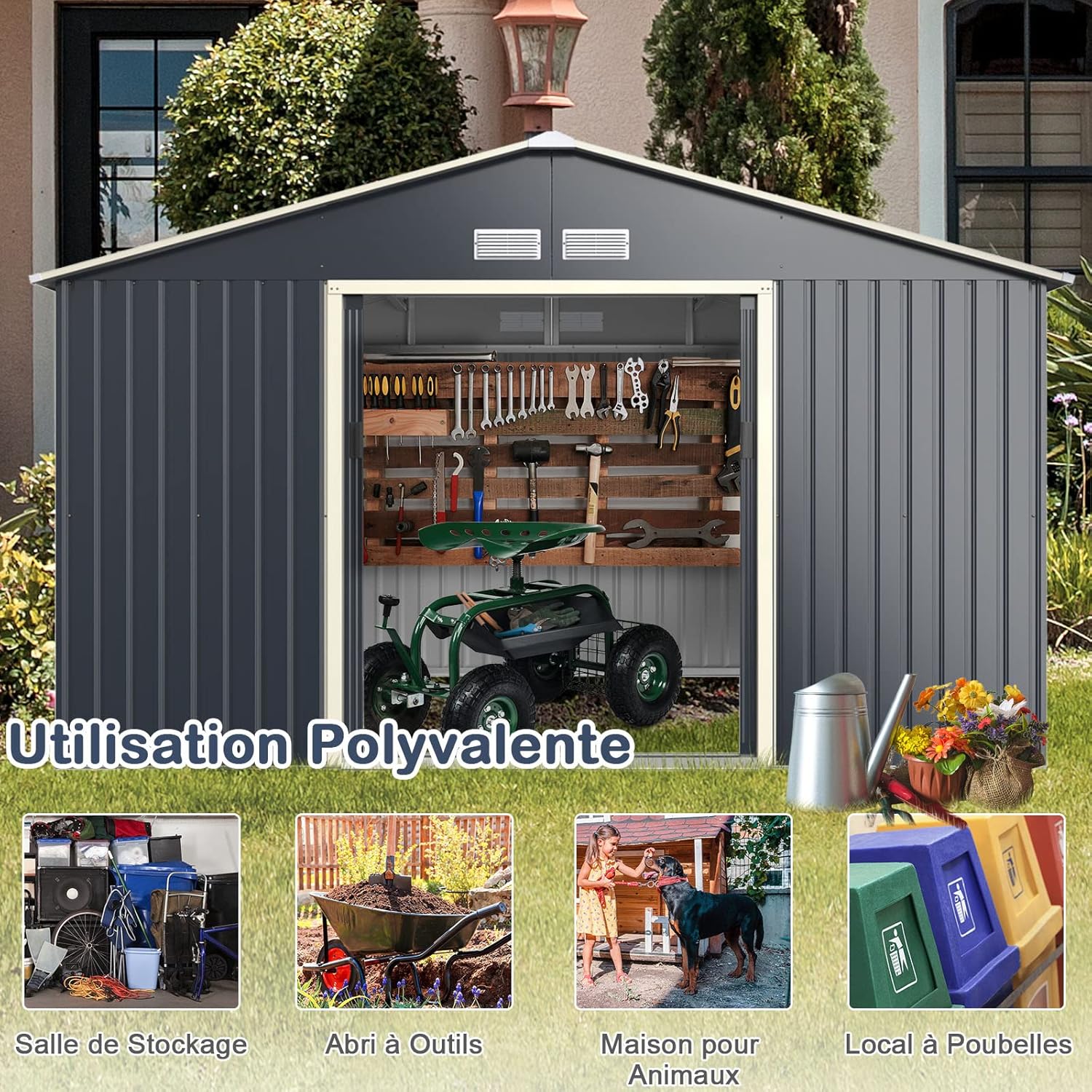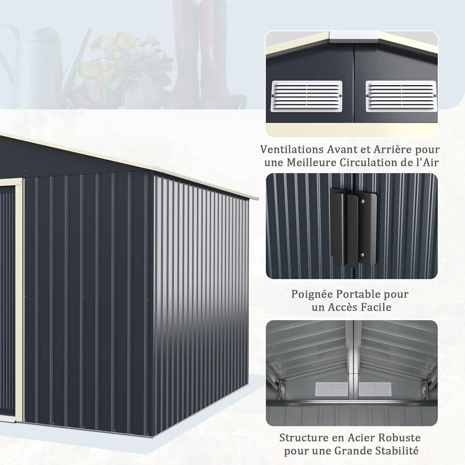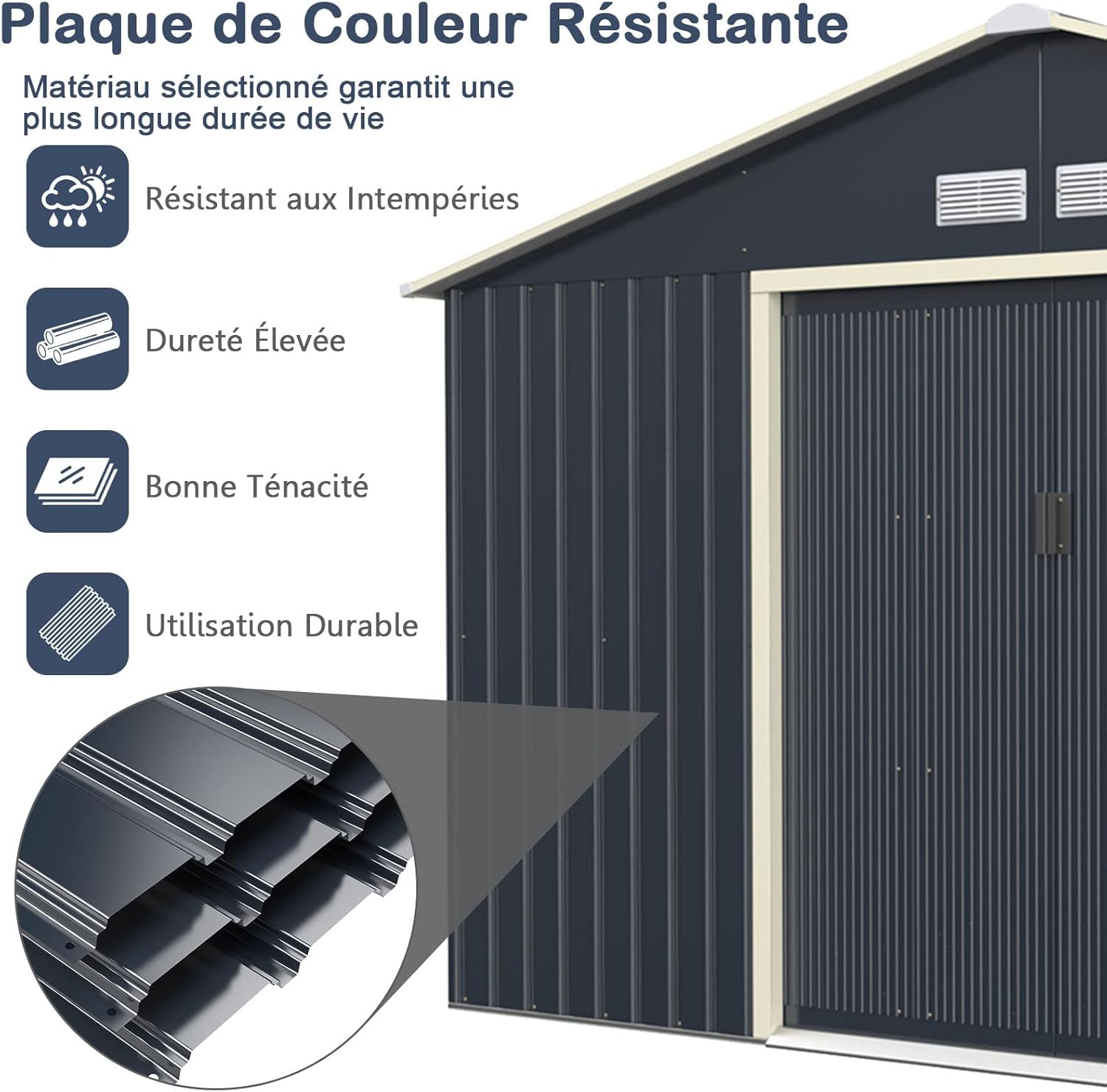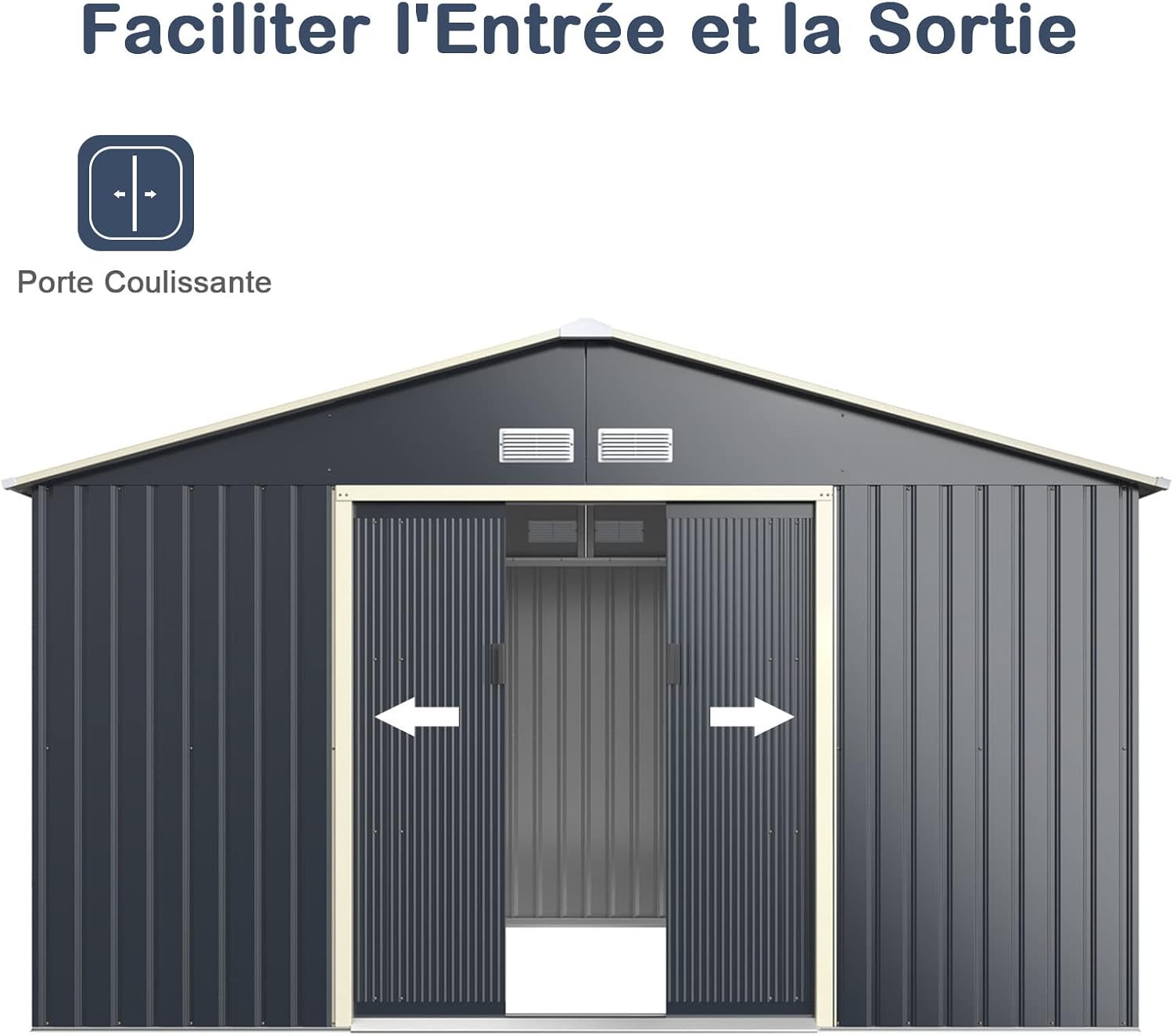 | Libellé | Abri de jardin métal, cabine de jardin extérieur portes coulissantes, cabane de rangement à outils, gris |