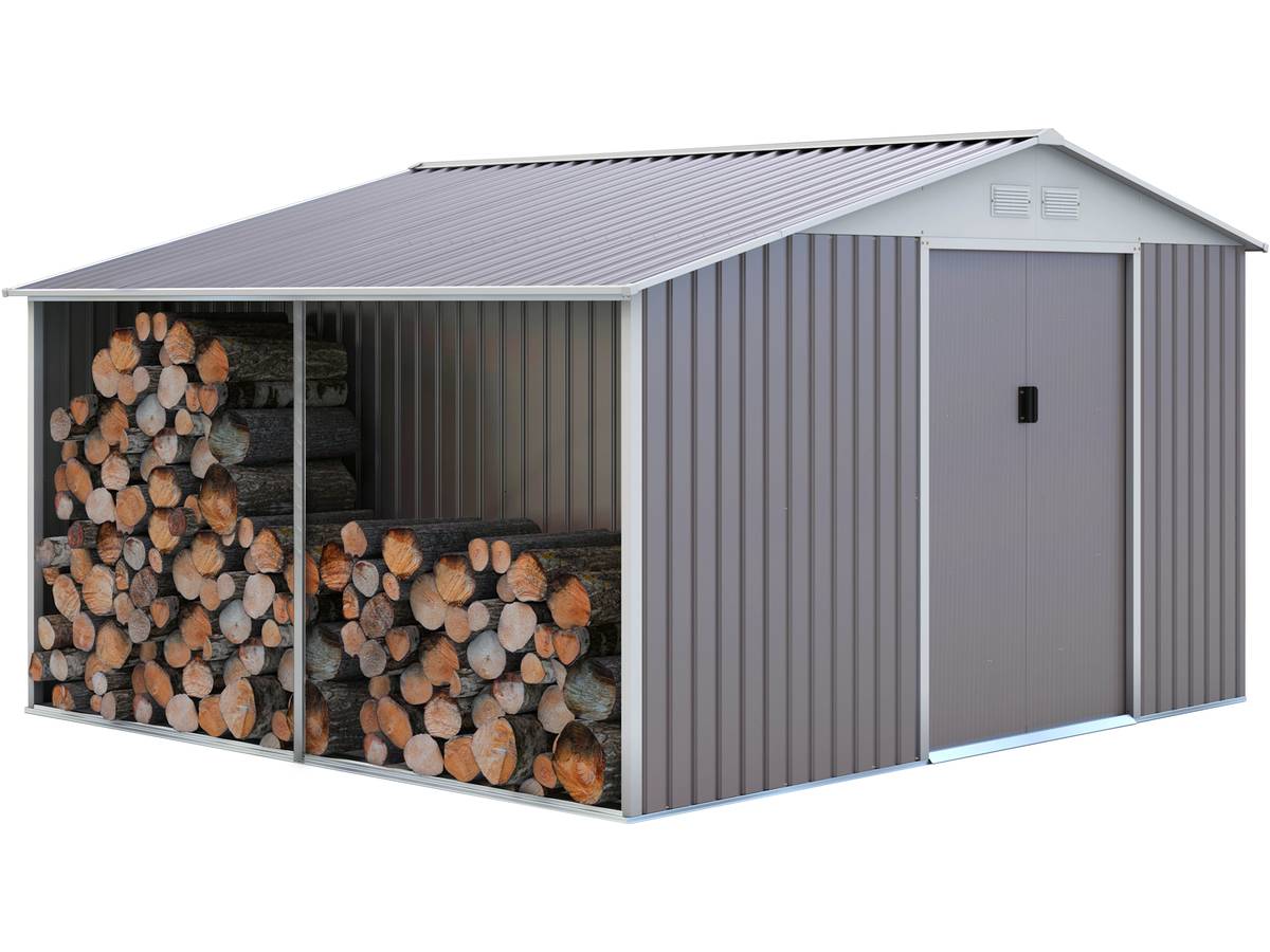 | Libellé | Abri de jardin métal "dallas" 8,84 m² avec abri bûche |