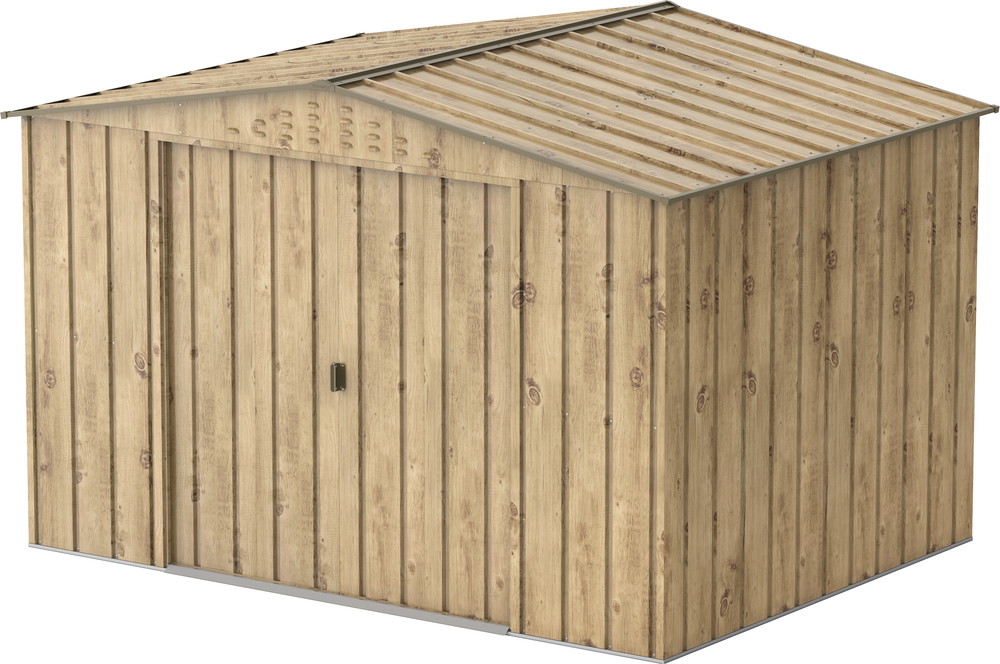 Abri de jardin métal WOODGRAIN - 7,75m² - kit ancrage - Imitation bois