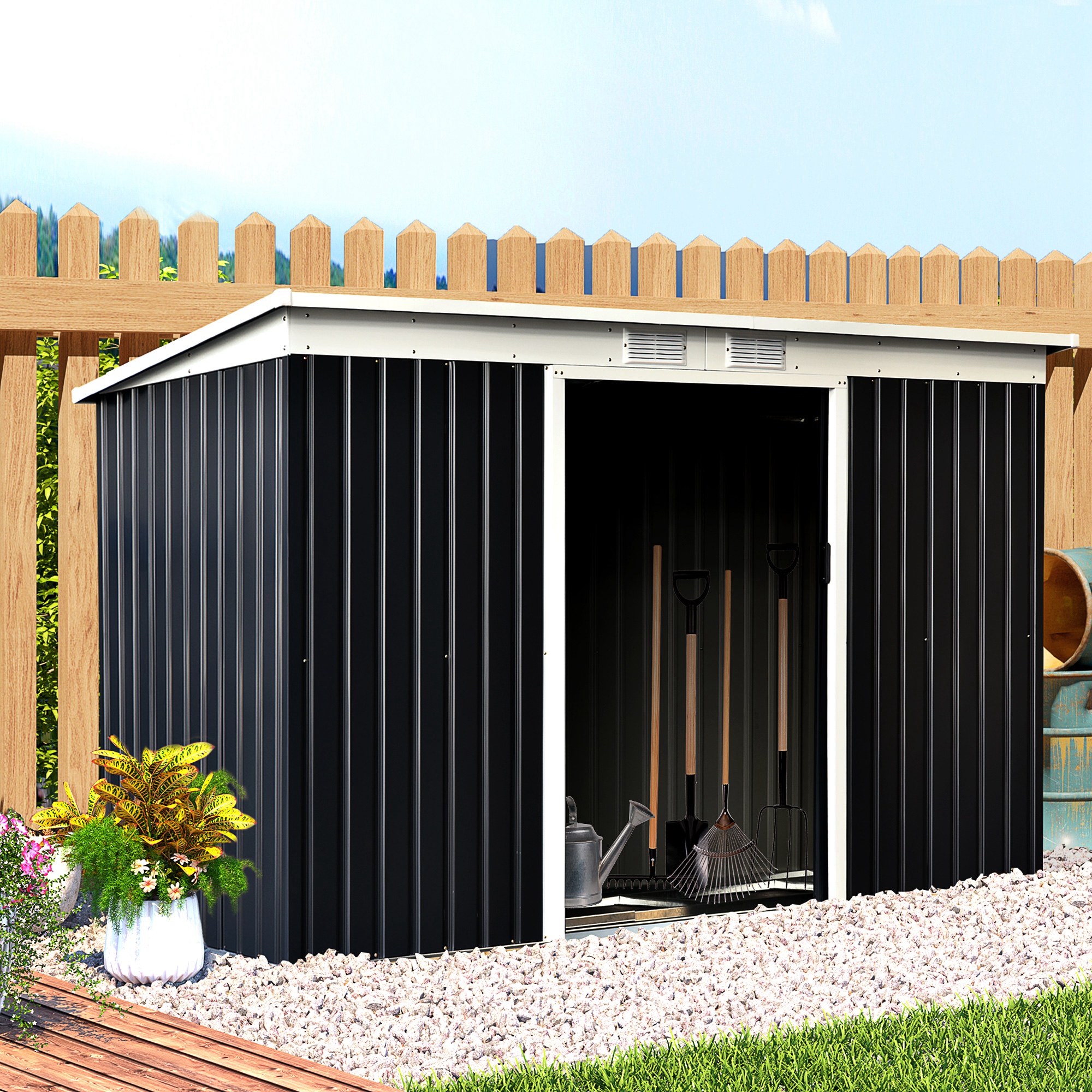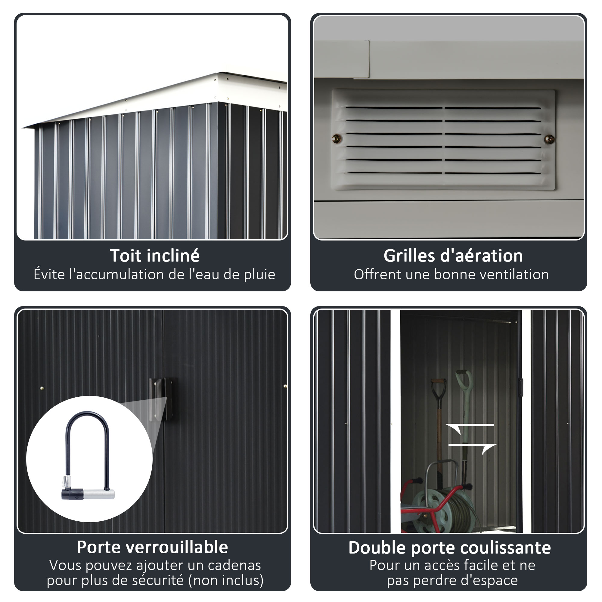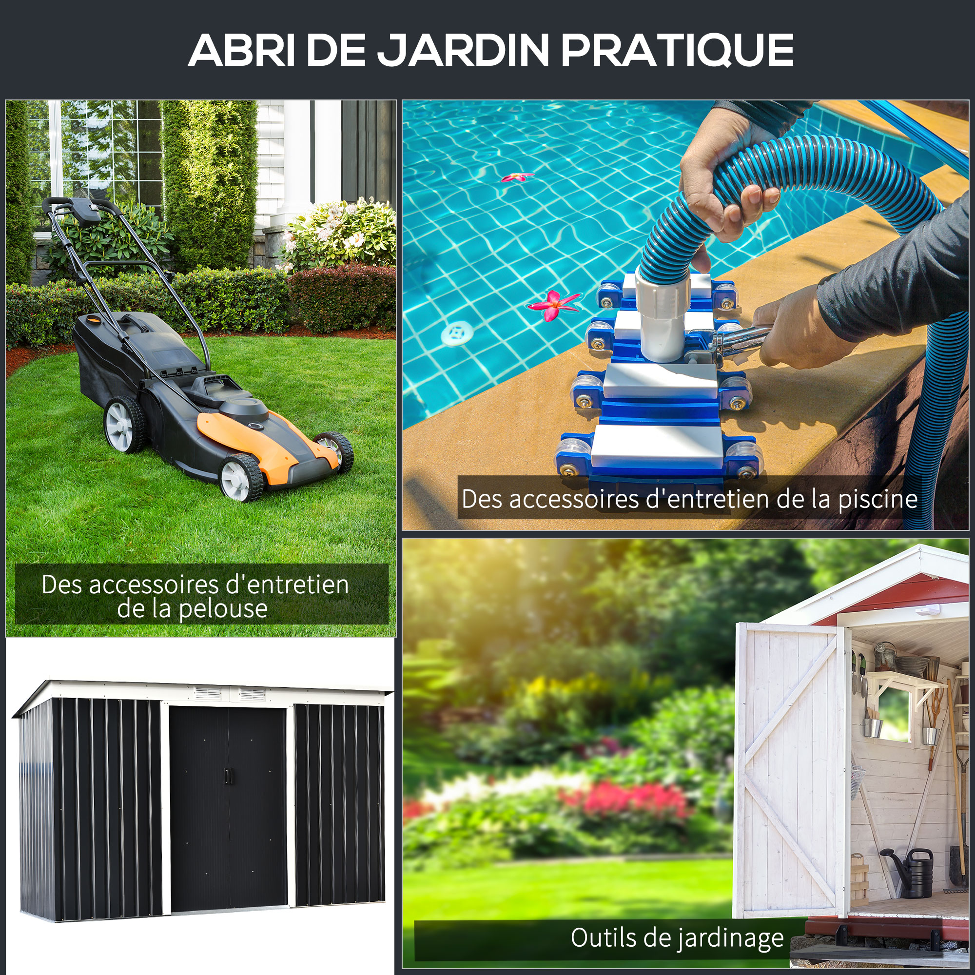 Libellé Abri de jardin - remise pour outils - cabanon portes verrouillables - dim. 2,8L x 1,3l x 1,72H m - tôle d'acier gris noir