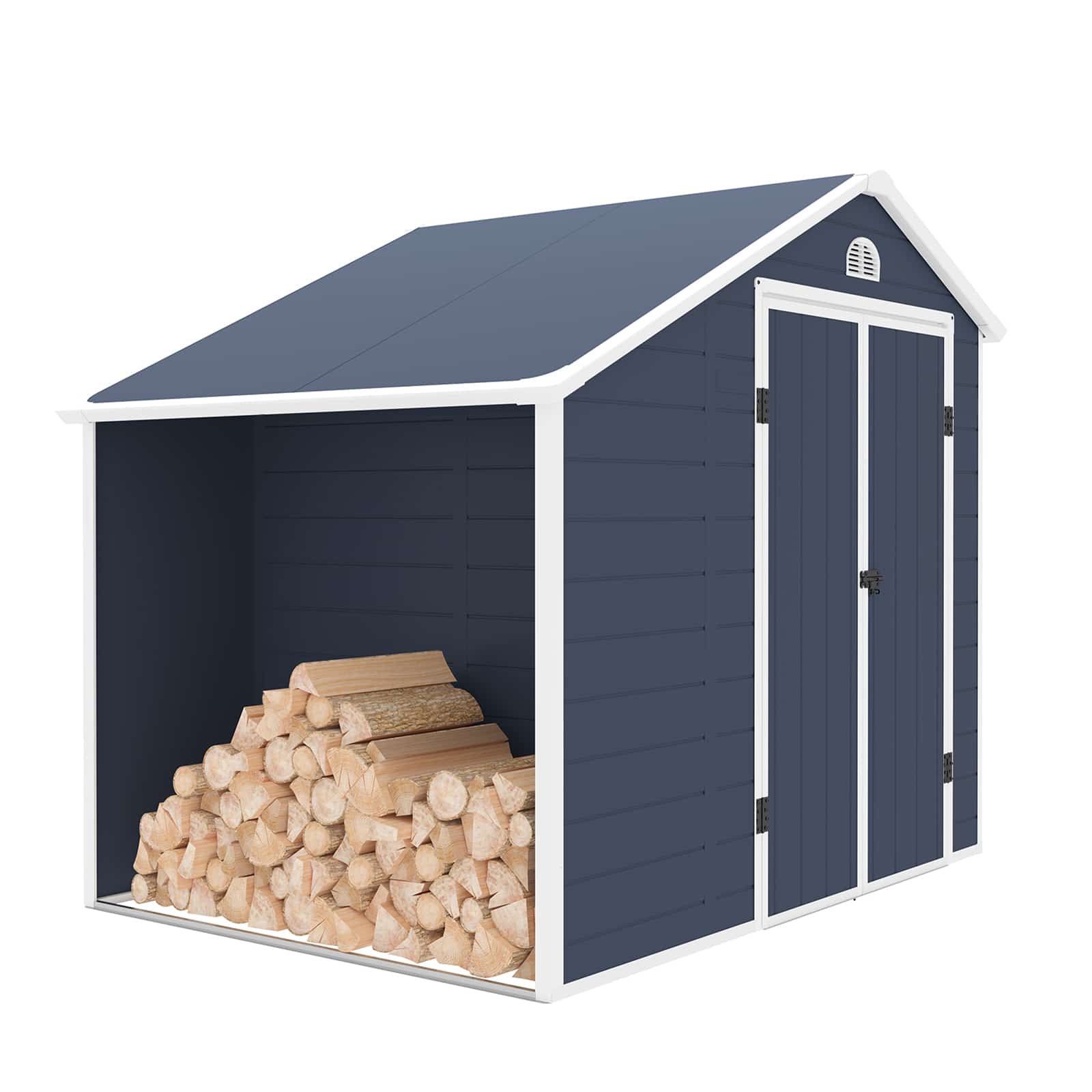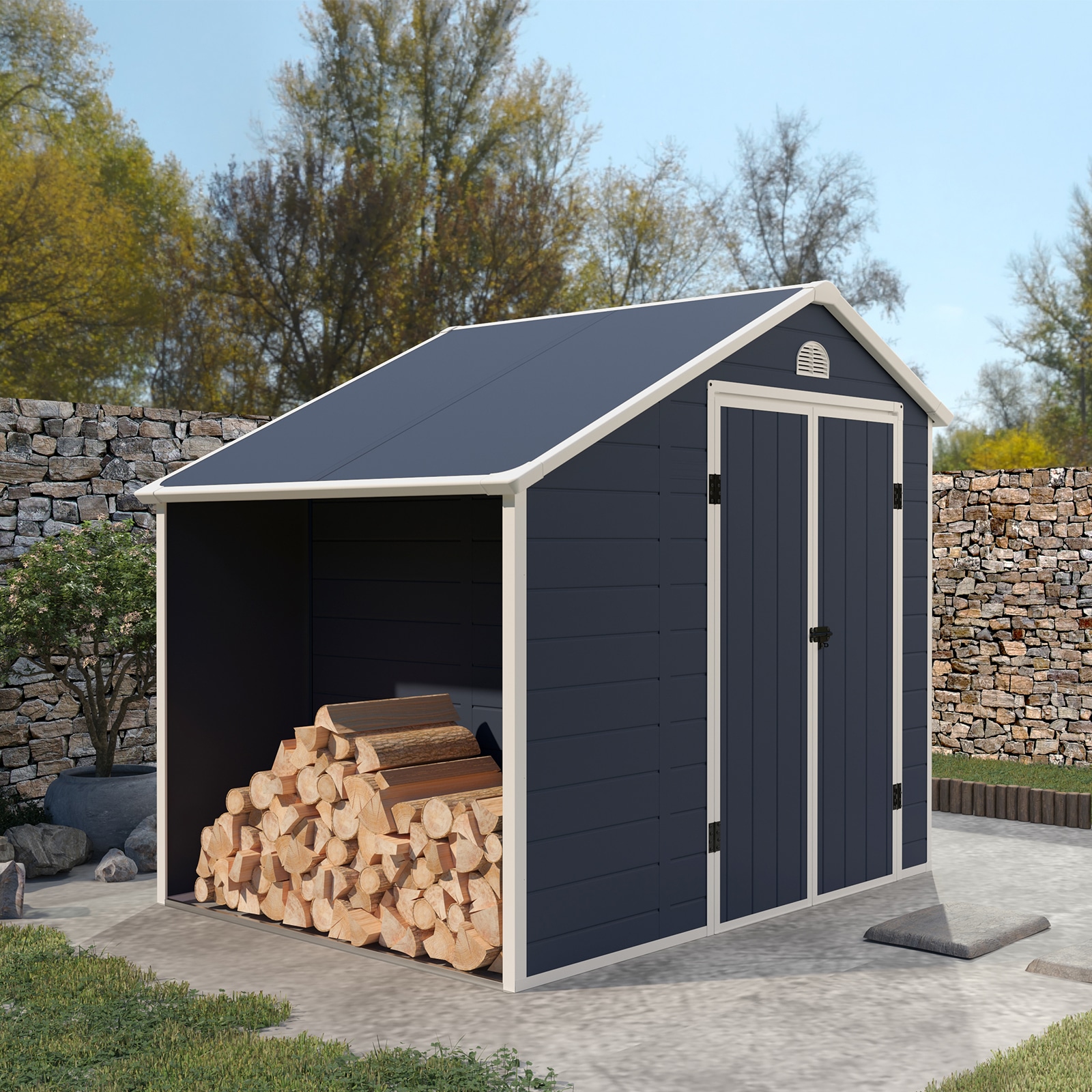 Abri de Jardin Résine Gardiun Sylvana B 5 m² 260x192x226 cm Anthracite avec Range Bûches Extérieur