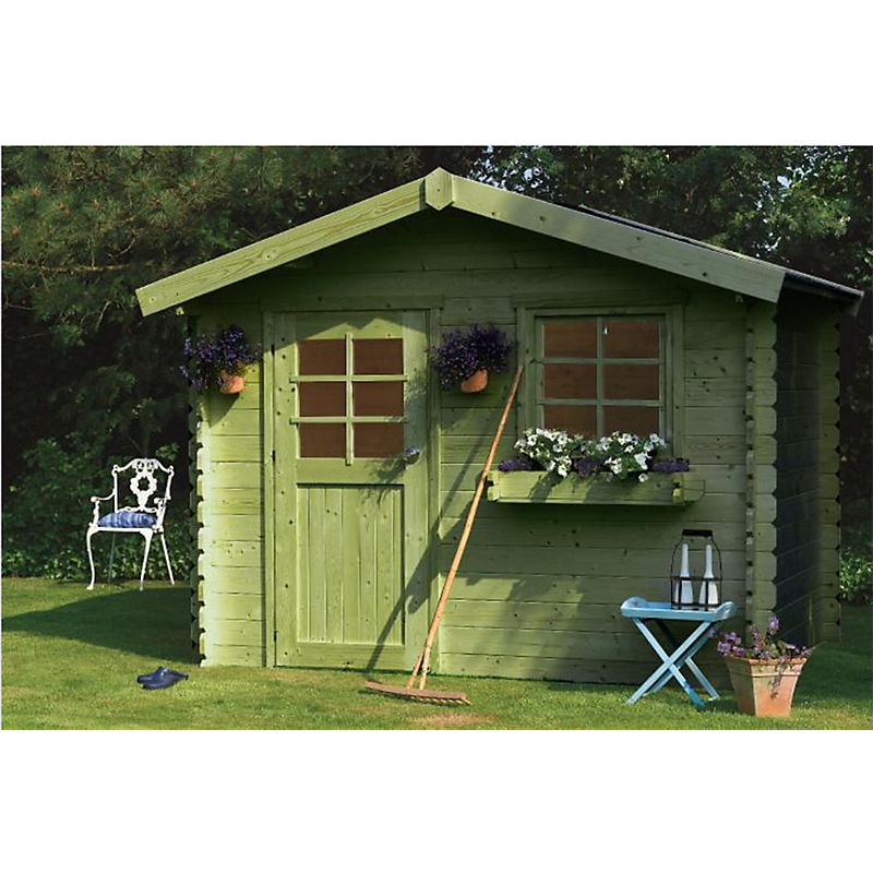 Abri de jardin Sologne en bois traité en madriers de 28 mm, dimensions au sol 2980 x2980 mm
