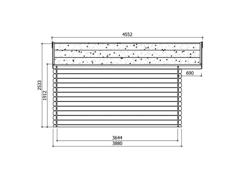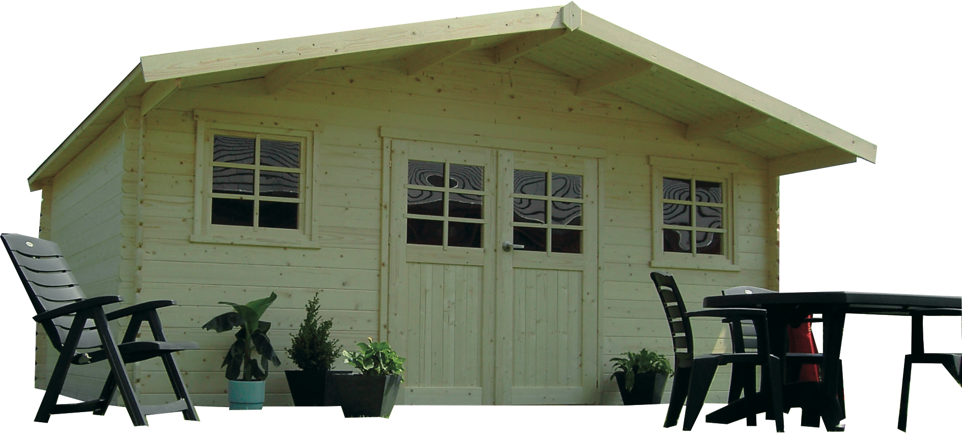 Abri de jardin Zürich en bois en madriers 28mm à emboîter. Dimensions au sol 5080 x 3880 - 609mm soit 17.65m² utile