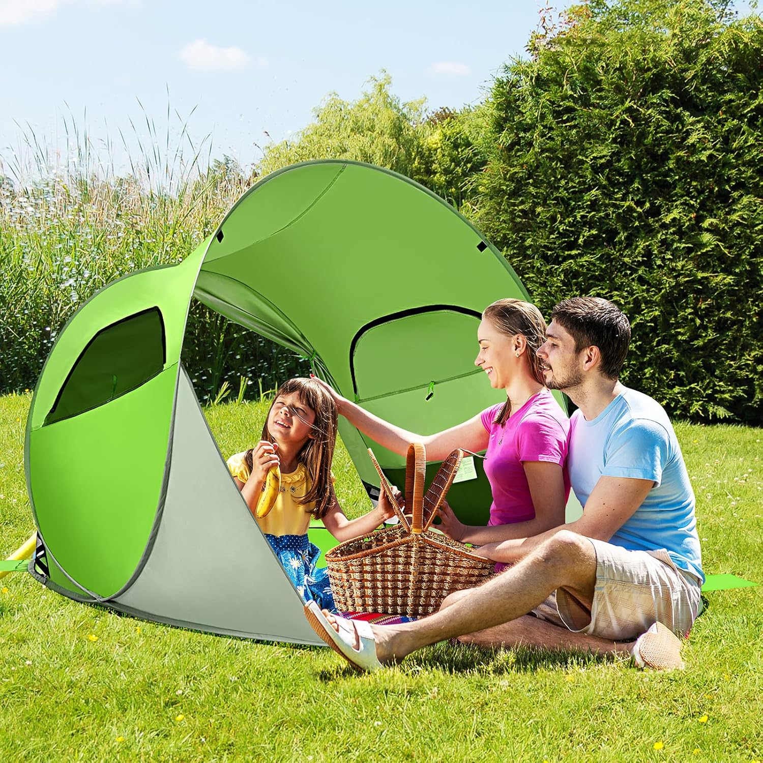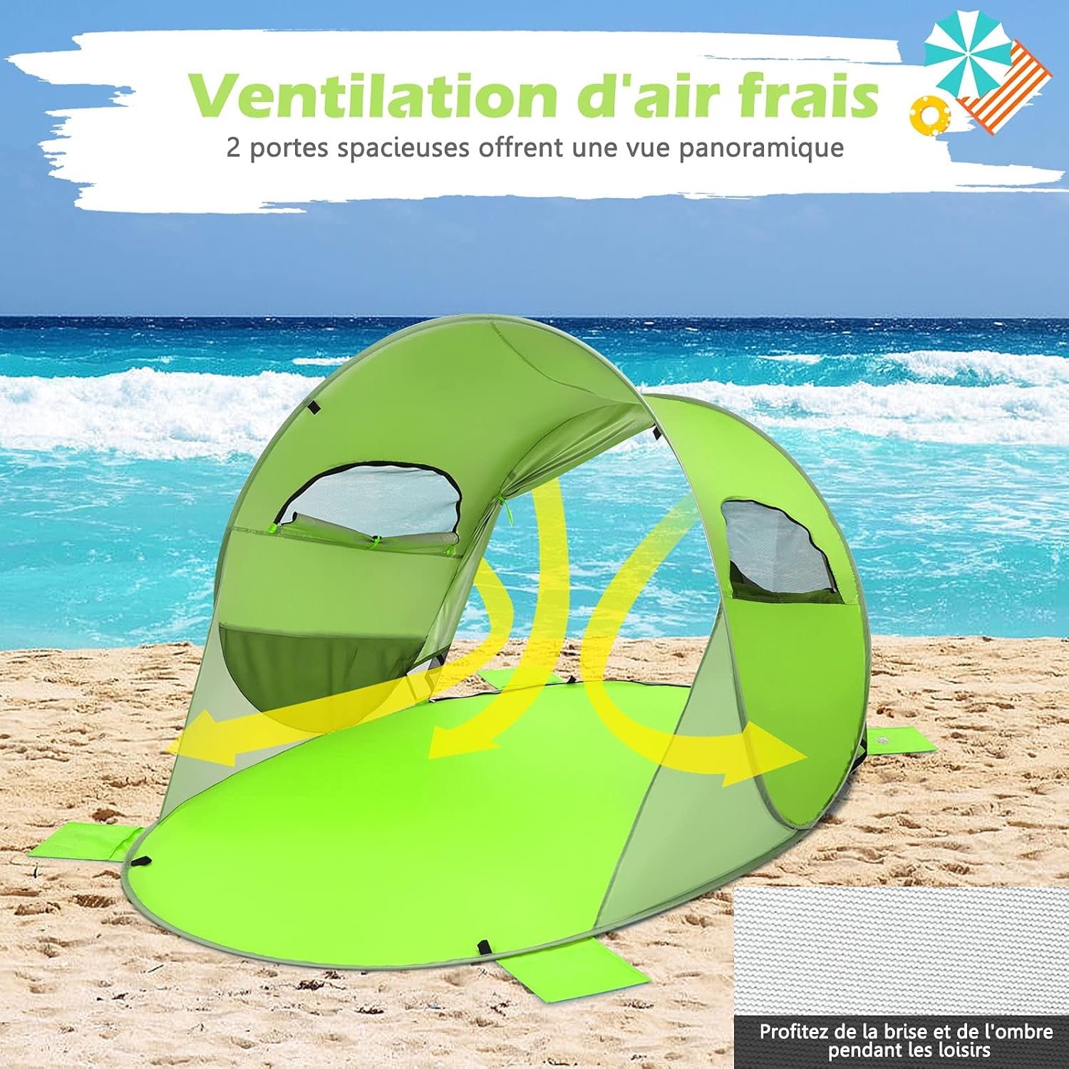 Abri de plage tente de plage pour 3-4 personnes, ultra légère, tente pliante pop-up automatique