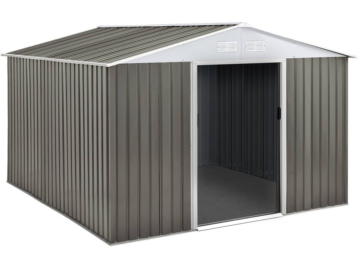 L'abri de jardin parfaitPLUS D'ESPACE L'abri de jardin Dallas est la solution idéale pour tous vos besoins de stockage.Placé dans votre jardin, cette remise vous permet d'y entreposer vos équipements d'extérieurs, votre tondeuse à gazon, votre mobilier de jardin, vos outils de bricolage mais aussi les vélos de vos enfants ou encore votre matériel de camping. ACIER GALVANISÉPour une utilisation prolongée et dans les meilleures conditions, cet abri de jardin a une structure renforcée en acier galvanisé.La galvanisation offre une protection contre les agressions des éléments de manière très efficace.En effet il oppose une résistance à la corrosion, aux UV, à l'abrasion, à l'érosion...Cet abri a été entièrement pensé pour vous offrir un espace de rangement extérieur fiable et efficace. UNE AÉRATION OTPIMALEAfin d'éviter les mauvaises odeurs et la dégradation de vos affaires, l'abri de jardin en métal Dallas est équipé de 4 grilles de ventilation.Ces grilles permettent un renouvellement permanent de l'air à l'intérieur de l'abri.UN SYSTÈME D'OUVERTURE PRATIQUE L'abri de jardin Dallas dispose également d'une ouverture en double porte.Tout l'intérêt de cette porte est son système coulissant.Dans les grands comme dans les petits jardins, optimisez votre espace.Grâce à sa fonction coulissante, cette double porte s'ouvre facilement, quelque soit l'encombrement à l'avant. Abri de jardin métal couleur taupe et blanc - Dimensions hors tout : 319 x 277 x 202 cm - Kit d'ancrage sur béton inclus .Descriptif: Abri de jardin métal couleur taupe et blanc - Dimensions hors tout : 319 x 277 x 202 cm - Kit d'ancrage sur béton inclus