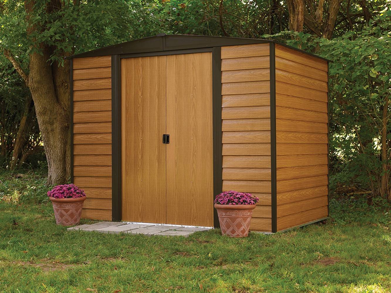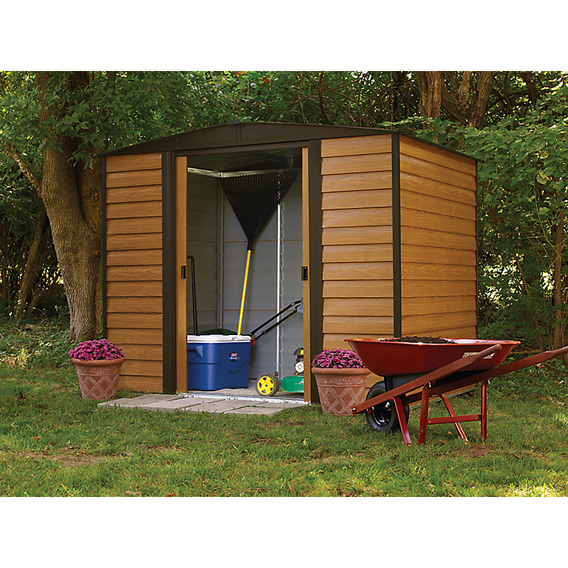 Abri métal de jardin - Large - Imitation bois - Toit 2 pentes - Arrow Woodlake 4,58 m2