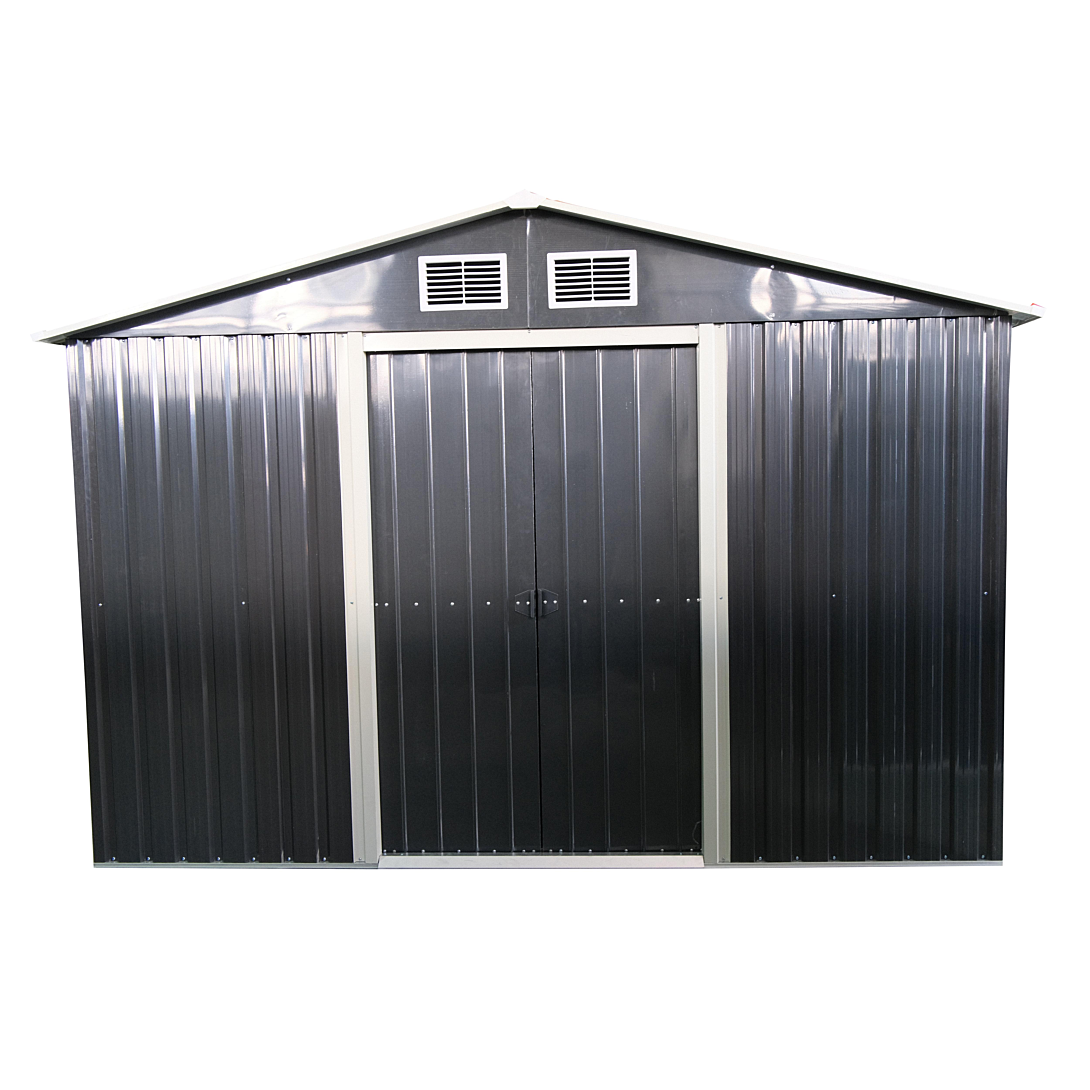 Abri métal 2 pentes, dimensions extérieures largeur 2,77 x profondeur 1,91 x hauteur faîtage 1,92 m surface 5,29 m2. Livré avec double porte dimensions 90 cm x H 152 cm permettant un large passage pour les objets encombrants. Assemblage par clipsage et visserie. Peinture ANTI-UV couleur anthracite montants crème. Livré avec grille d'aération. Matériel acier galvanisé. Fixations au sol non fournies. Garantie : 12 ans contre la perforation par la rouille