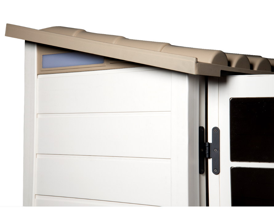 LES + PRODUIT : abri résistant épaisseur 22 mm - plancher en composite très épais qui permet d'installer l'abri sans dalle béton - très grosse épaisseur du plancher qui sert d'isolant en cas de fortes pluies ou d'humidité stagnante - très facile à monter, peu de pièces à assembler par rapport aux autres abris résine du marché - sans entretien (à nettoyer à l'éponge avec de l'eau savonneuse) - résistant aux moisissures, aux insectes et à la corrosion - visserie assemblage galvanisée fournie - petit rangement d'appoint facile à monter.