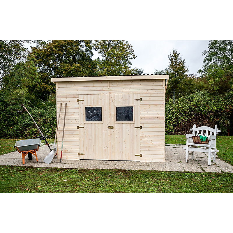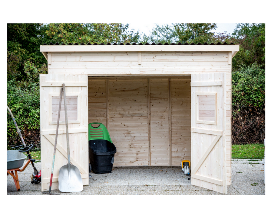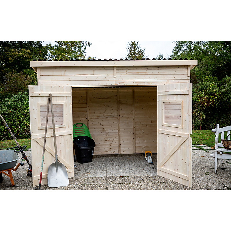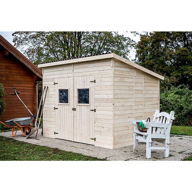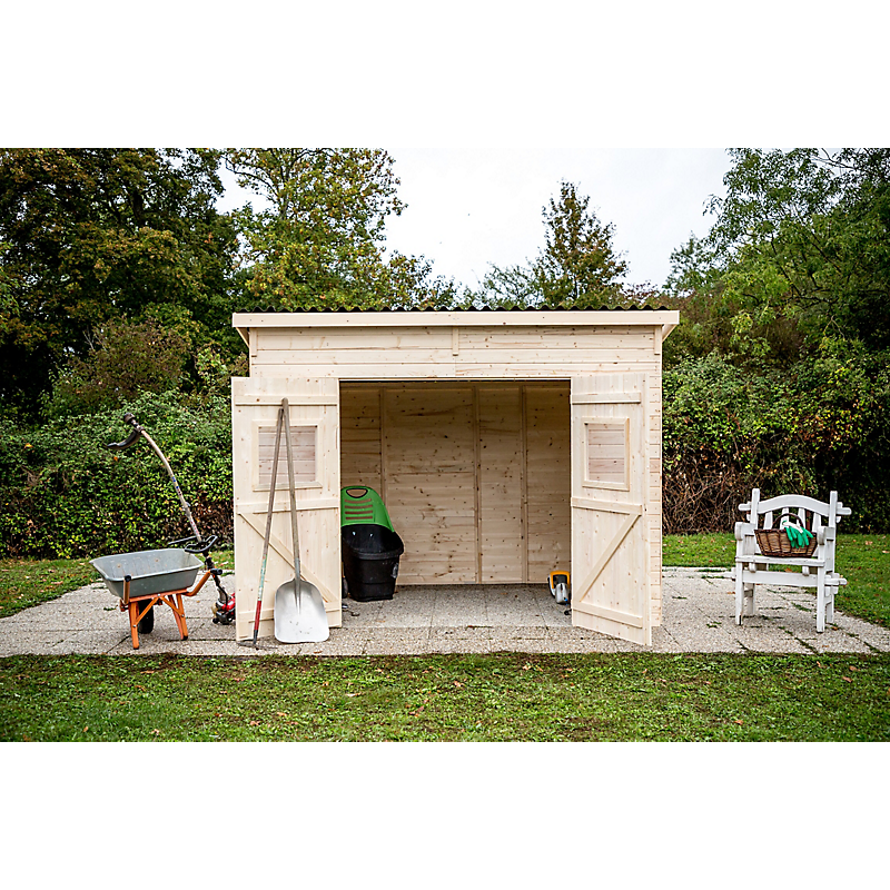 Abri panneaux bois massif 16 mm toit mono pente sans plancher 6,60 m2