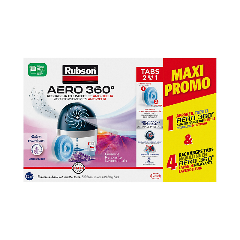 Libellé Absorbeur d'humidité Aero 360° 20 m² + 4 recharges, parfum lavande