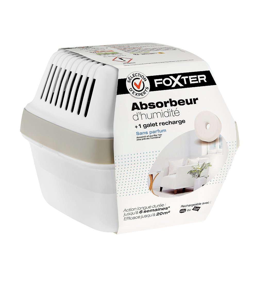 Absorbeur d'humidité et 1 galet de recharge, sans parfum, 450g - Sélection d'Experts - Foxter