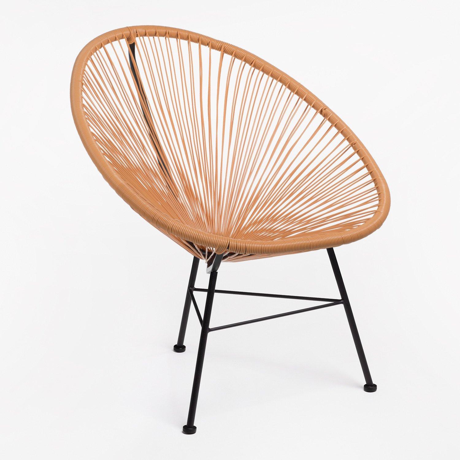 Très belle chaise Acapulco beige praliné. C'est une pièce originale, confortable et élégante. Elle peut aussi bien être utilisée en intérieur comme en extérieur. Sa structure est en acier et le siège en polyéthylène. Hauteur: ~83,5 cm Largeur: 72 cm Profondeur: 83 cm Hauteur du siège: ~46 cm Poids: 4,55 Kg Largeur des Pieds: 46 cm Largeur de Soutien: 72 cm