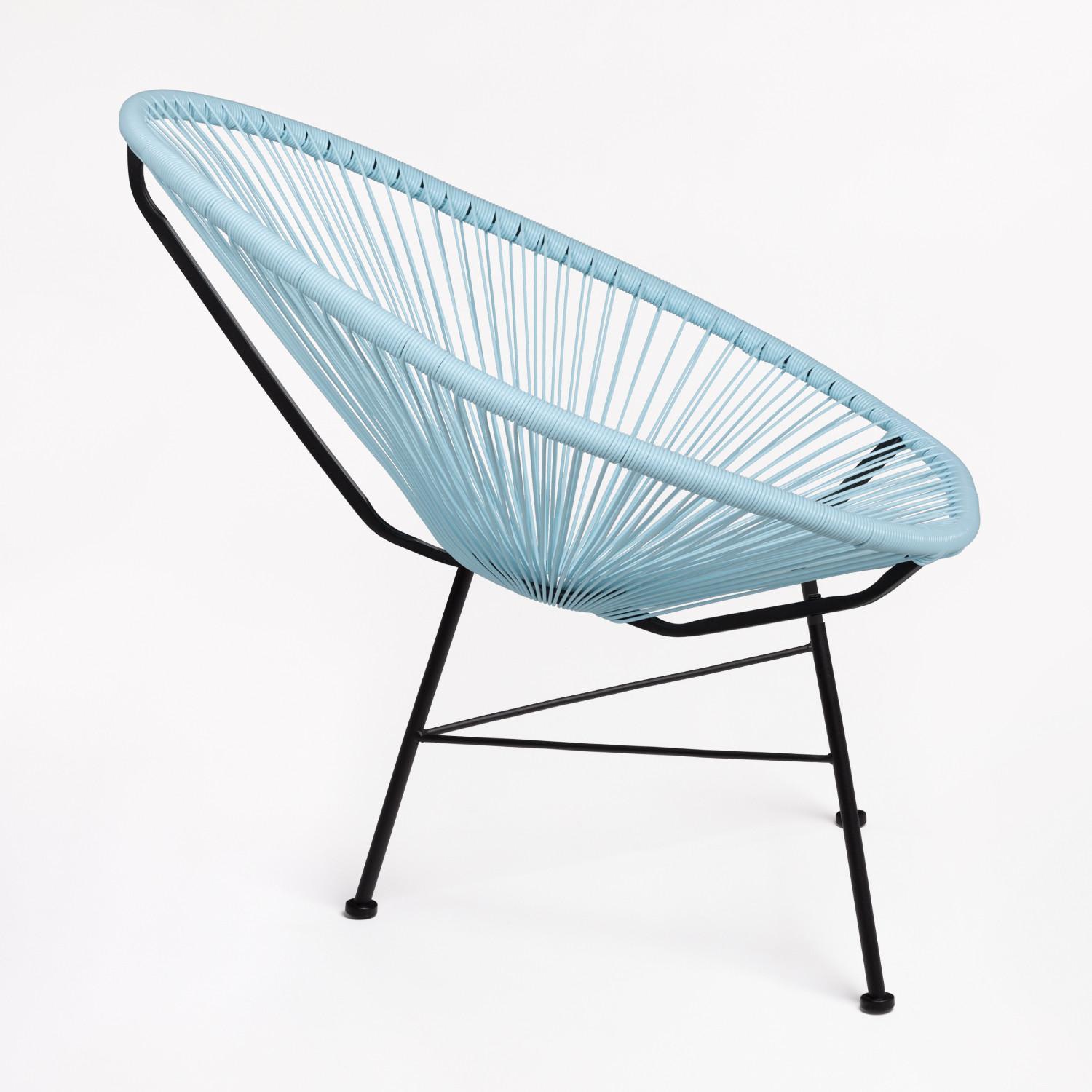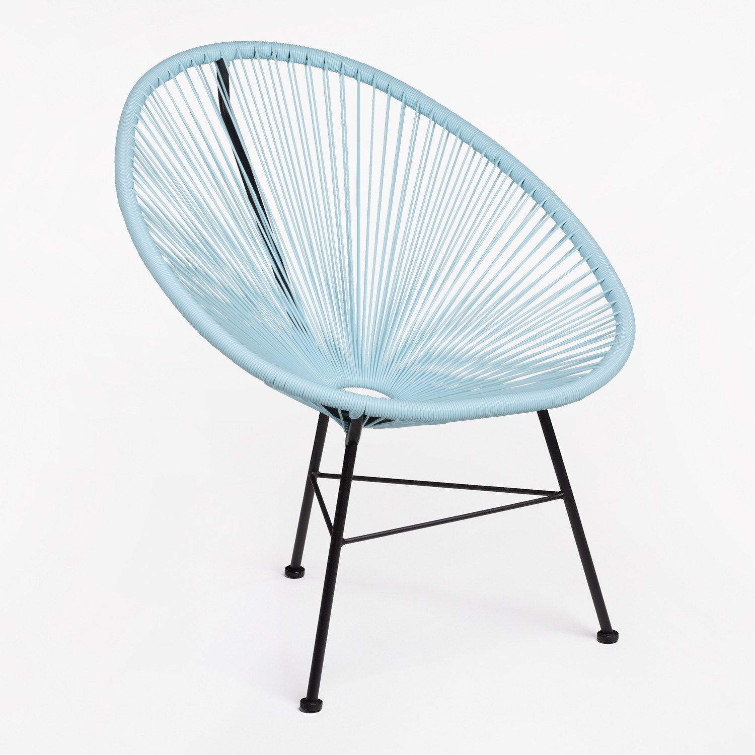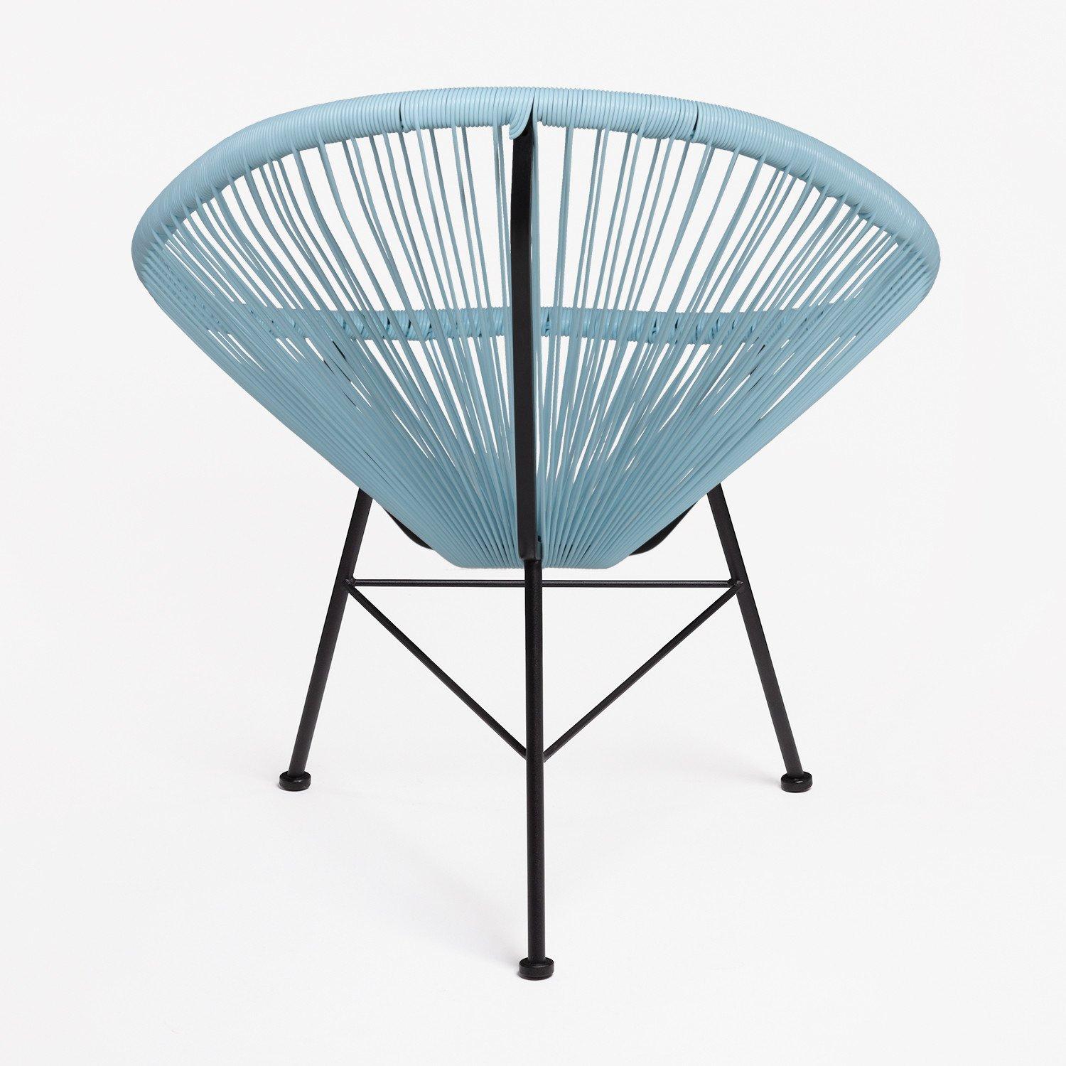 Très belle chaise Acapulco bleu pacifique. C'est une pièce originale, confortable et élégante. Elle peut aussi bien être utilisée en intérieur comme en extérieur. Sa structure est en acier et le siège en polyéthylène. Hauteur: ~83,5 cm Largeur: 72 cm Profondeur: 83 cm Hauteur du siège: ~46 cm Poids: 4,55 Kg Largeur des Pieds: 46 cm Largeur de Soutien: 72 cm