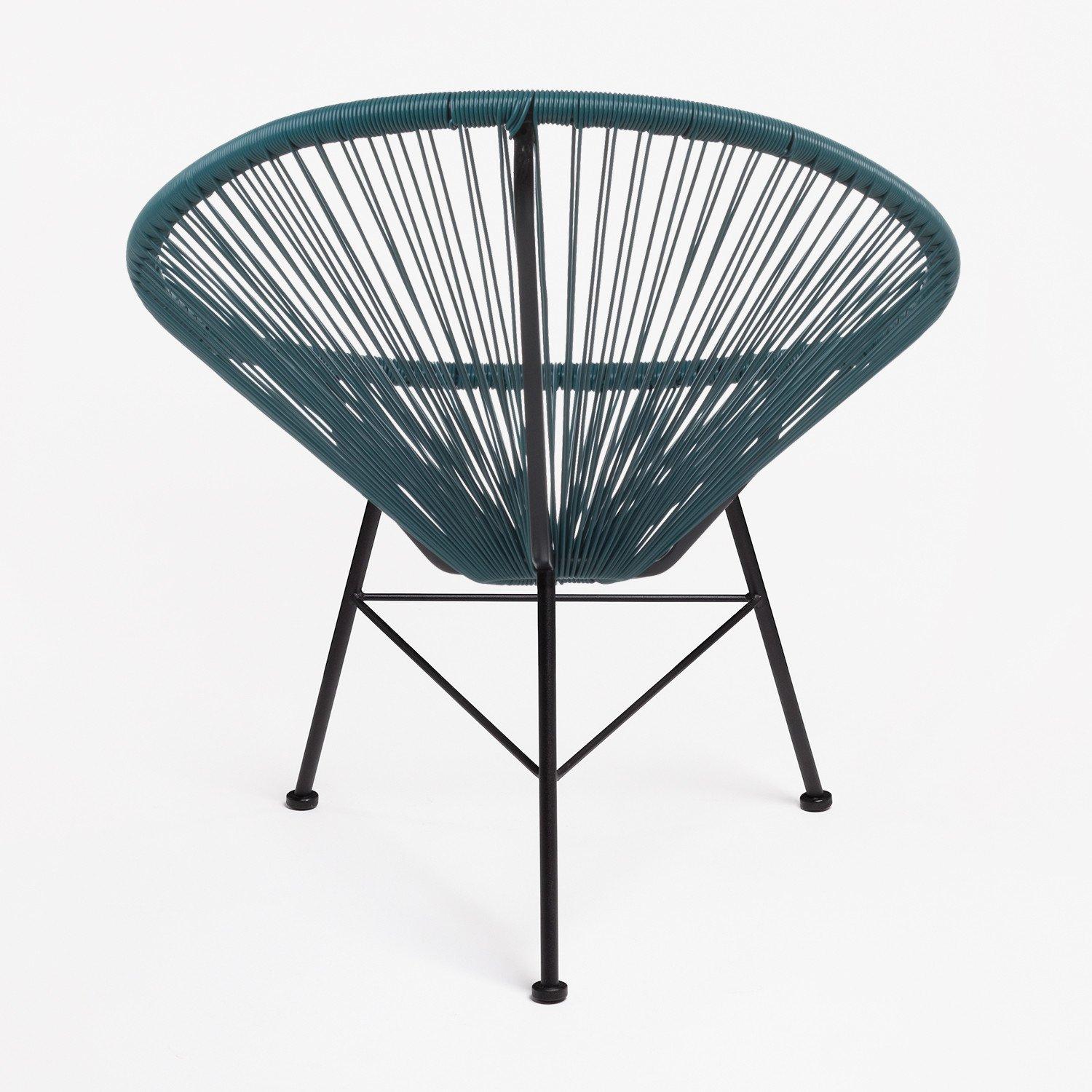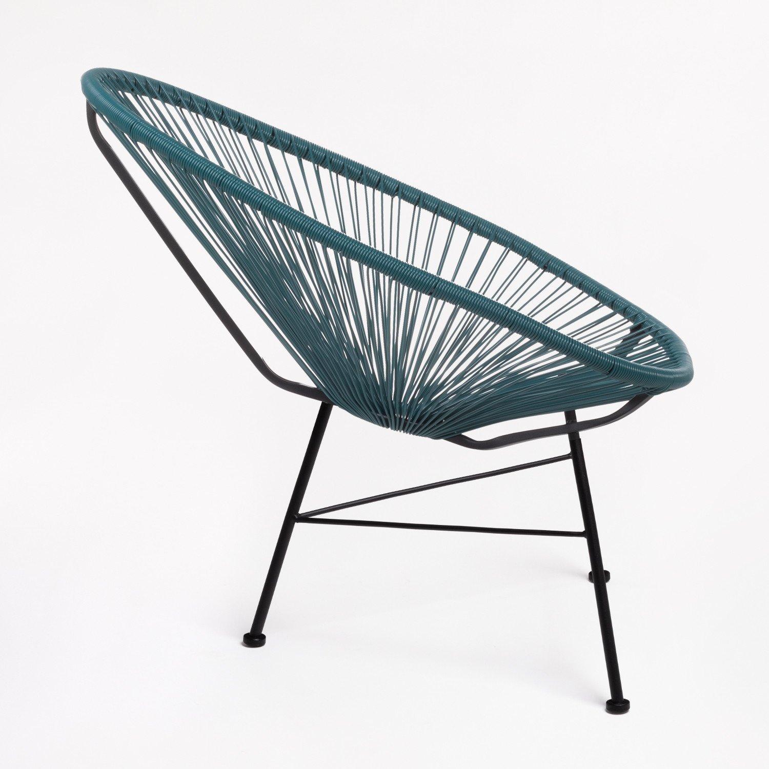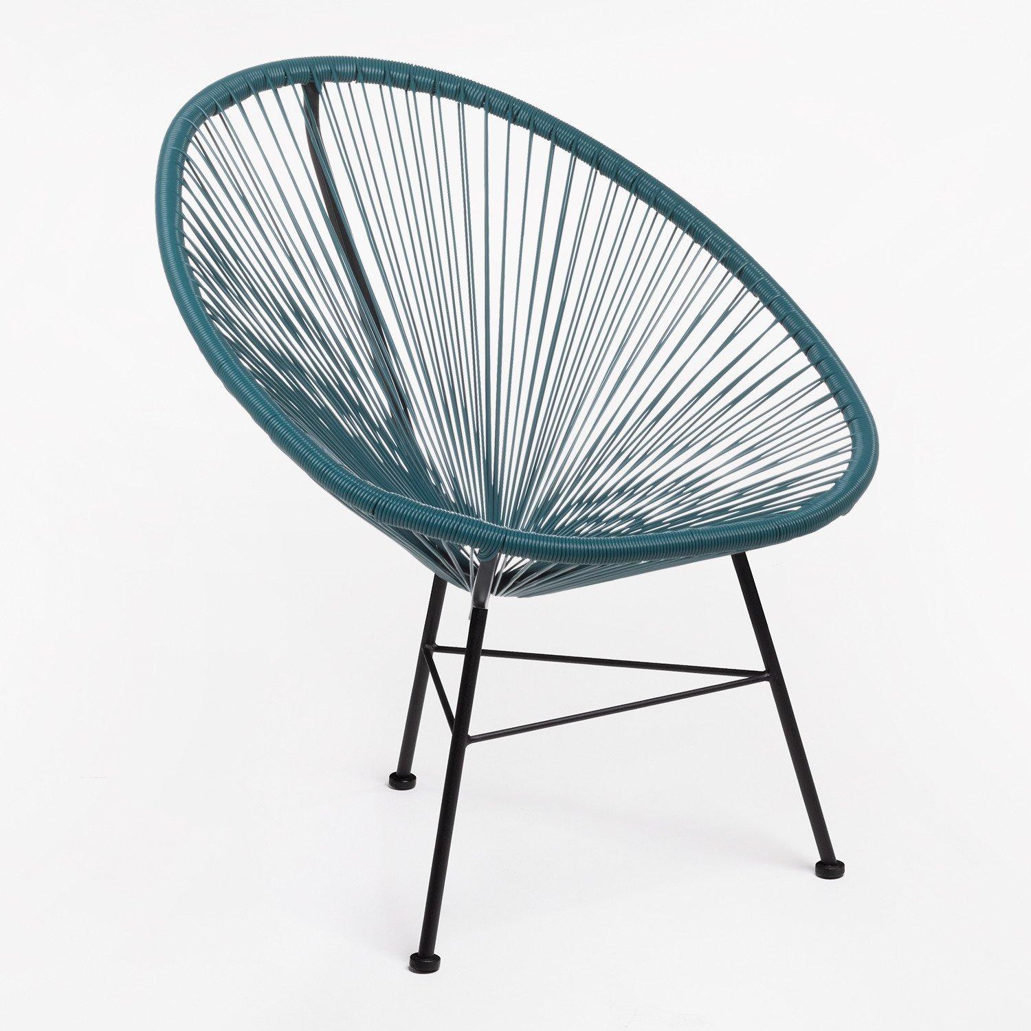 Très belle chaise Acapulco bleu pacifique. C'est une pièce originale, confortable et élégante. Elle peut aussi bien être utilisée en intérieur comme en extérieur. Sa structure est en acier et le siège en polyéthylène. Hauteur: ~83,5 cm Largeur: 72 cm Profondeur: 83 cm Hauteur du siège: ~46 cm Poids: 4,55 Kg Largeur des Pieds: 46 cm Largeur de Soutien: 72 cm