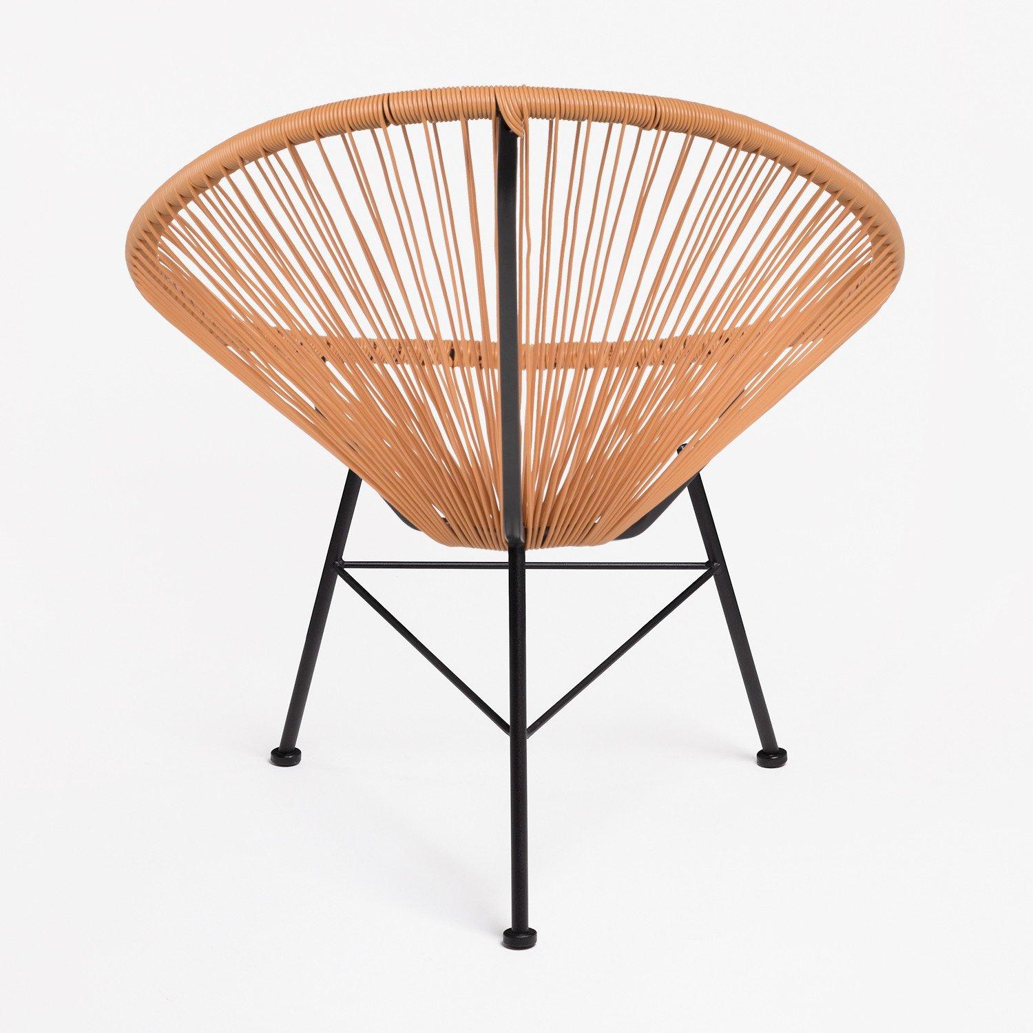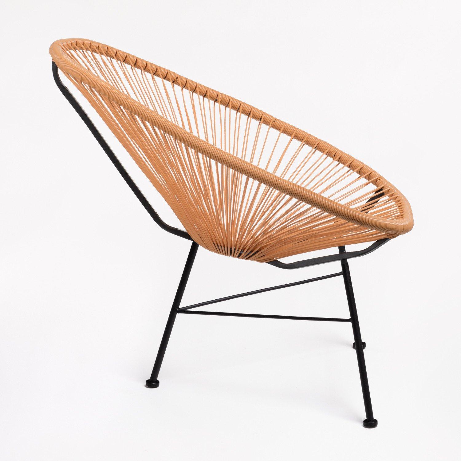 Très belle chaise Acapulco brun praliné. C'est une pièce originale, confortable et élégante. Elle peut aussi bien être utilisée en intérieur comme en extérieur. Sa structure est en acier et le siège en polyéthylène. Hauteur: ~83,5 cm Largeur: 72 cm Profondeur: 83 cm Hauteur du siège: ~46 cm Poids: 4,55 Kg Largeur des Pieds: 46 cm Largeur de Soutien: 72 cm