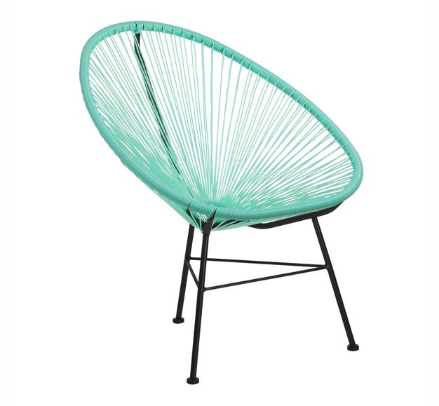 Très belle chaise Acapulco jade. C'est une pièce originale, confortable et élégante. Elle peut aussi bien être utilisée en intérieur comme en extérieur. Sa structure est en acier et le siège en polyéthylène. Hauteur: ~83,5 cm Largeur: 72 cm Profondeur: 83 cm Hauteur du siège: ~46 cm Poids: 4,55 Kg Largeur des Pieds: 46 cm Largeur de Soutien: 72 cm