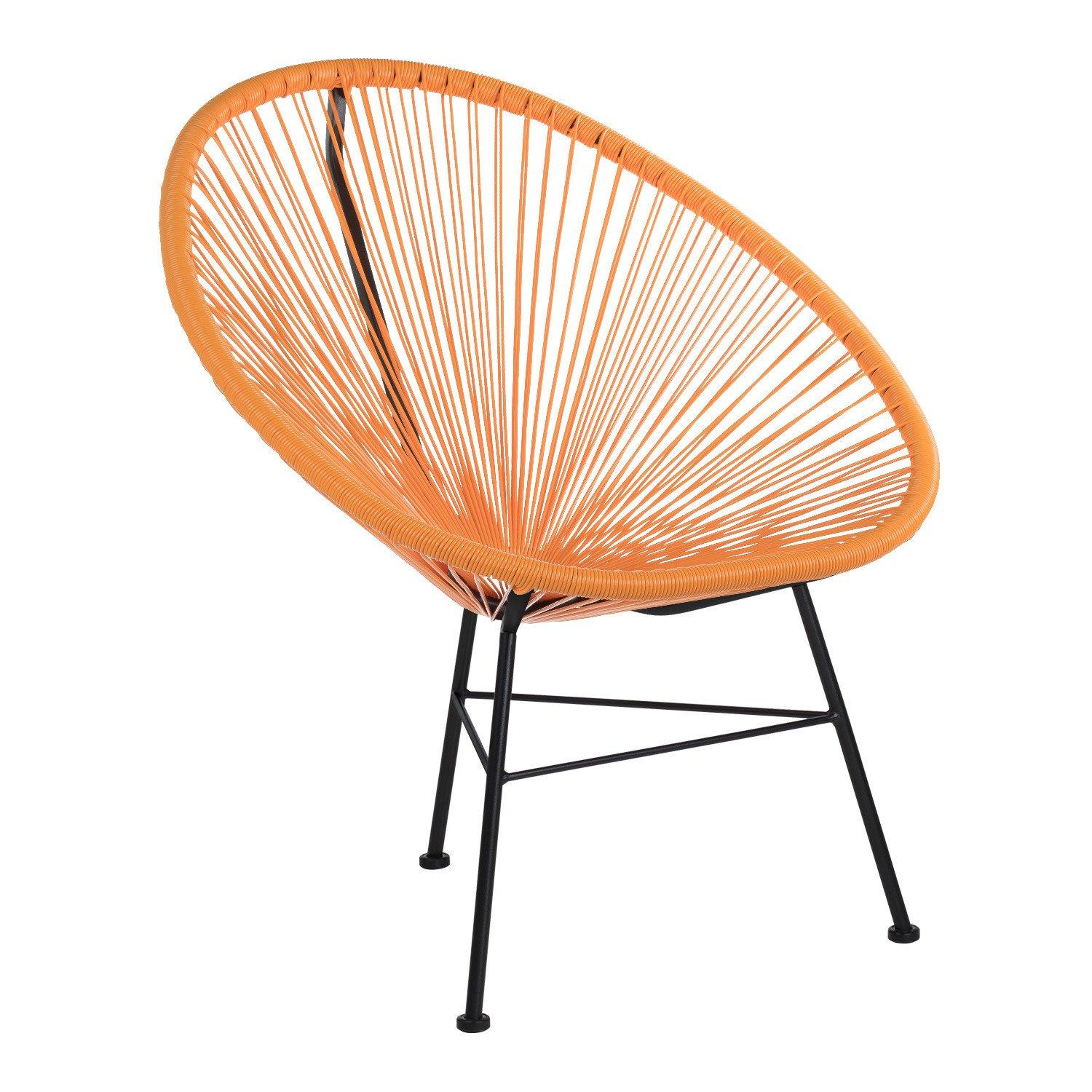 Très belle chaise Acapulco orange abricot. C'est une pièce originale, confortable et élégante. Elle peut aussi bien être utilisée en intérieur comme en extérieur. Sa structure est en acier et le siège en polyéthylène. Hauteur: ~83,5 cm Largeur: 72 cm Profondeur: 83 cm Hauteur du siège: ~46 cm Poids: 4,55 Kg Largeur des Pieds: 46 cm Largeur de Soutien: 72 cm